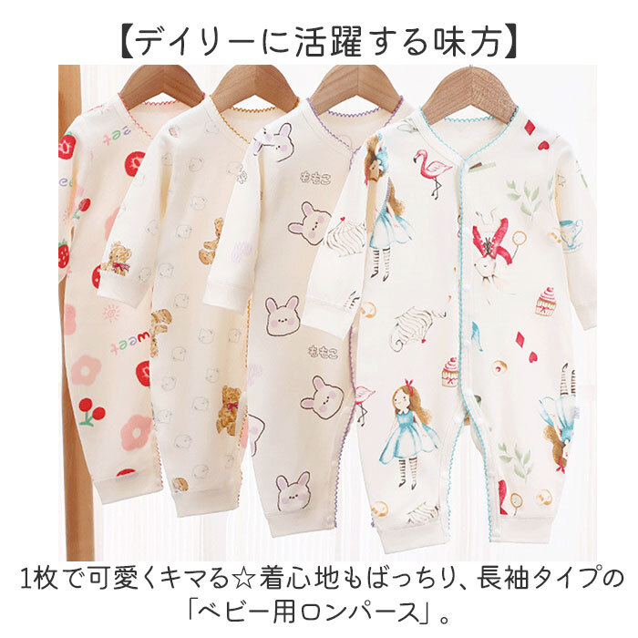 | 商品説明 | ・・【デイリーに活躍する味方】 ・・1枚で可愛くキマる☆着心地もばっちり、長袖タイプの「ベビー用ロンパース」。 ・【すっぽりカバー!ロンパースタイプ】 ・上下一体型のロンパース。めくれ上がりやズレを防ぎ、お腹や足の冷えもガード。 ・【着替えもおむつ替えもスムーズ】 ・襟から股下、足元まで、スナップボタンで簡単着脱。着替やおむつ替えの手間を軽減◎ ・【元気いっぱいのベビーにぴったり】 ・動きを妨げない、程よいストレッチ性◎動きが活発になってもストレスフリーな着用感。 ・【デリケートな肌に触れても安心】 ・チクチク感せず、適度な厚みのコットン混紡素材。サラリと快適な肌触りでロングシーズン活躍。 ・【ナチュラルでキュートなデザイン】 ・男の子も女の子も選べて、着せた姿も愛おしいデザイン。洗い替え用に何枚あっても嬉しい! |
