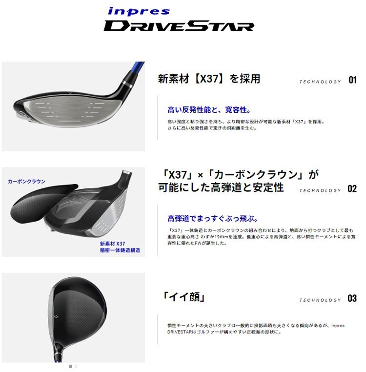 【商品特徴】 ■新素材【X37】を採用 高い反発性能と、寛容性。 高い強度と粘り強さを持ち、より精密な設計が可能な新素材「X37」を採用。 さらに高い反発性能で驚きの飛距離を生む。 ■「X37」×「カーボンクラウン」が可能にした高弾道と安定性 高弾道でまっすぐぶっ飛ぶ。 「X37」一体鋳造とカーボンクラウンの組み合わせにより、地面から打つクラブとして 最も重要な重心高さ わずか19mmを達成。 低重心による高弾道と、高い慣性モーメントによる寛容性に優れたFWが誕生した。 ■「イイ顔」 慣性モーメントの大きいクラブは一般的に投影面積も大きくなる傾向があるが、inpres DRIVESTARは ゴルファーが構えやすい正統派の形状に。 【商品詳細】 ●状態:新品・未使用品 ●構造:X37精密鋳造ボディ、カーボンクラウン ●ロフト:19度(7W) ●長さ:42.25インチ ●シャフト:SPEEDER NX for Yamaha M423f(FLEX:R) ●グリップ:ラムキン クロスライン M60相当/BLあり/ロゴ無し(35g) ●重量:297g バランス/D2 ●付属品:ヘッドカバー ※撮影時の光量の具合や、ご覧いただいております画面環境によりまして、実際の商品と若干色味が違う場合がございます。 ※商品詳細のスペック値はメーカー表記の数値となりますが、個体差による若干の公差がございます。