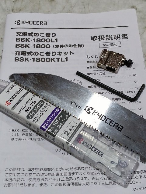 | 商品説明 | 【1円スタート!美品】KYOCERA / 京セラ 充電式のこぎり BSK-1800 バッテリー / 充電器付き 動作良好[21-1-1-A]:930973 |