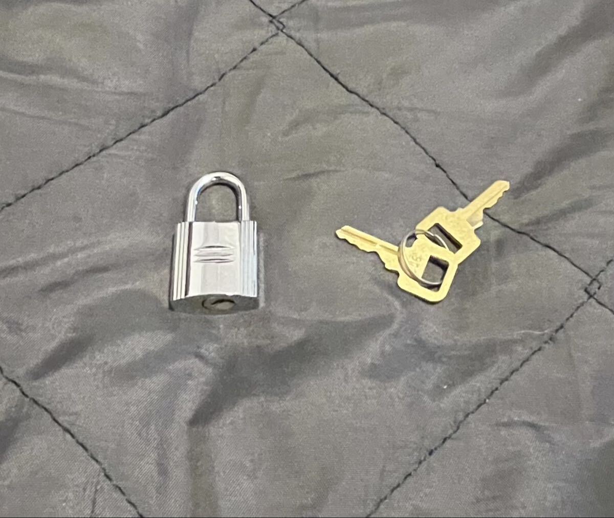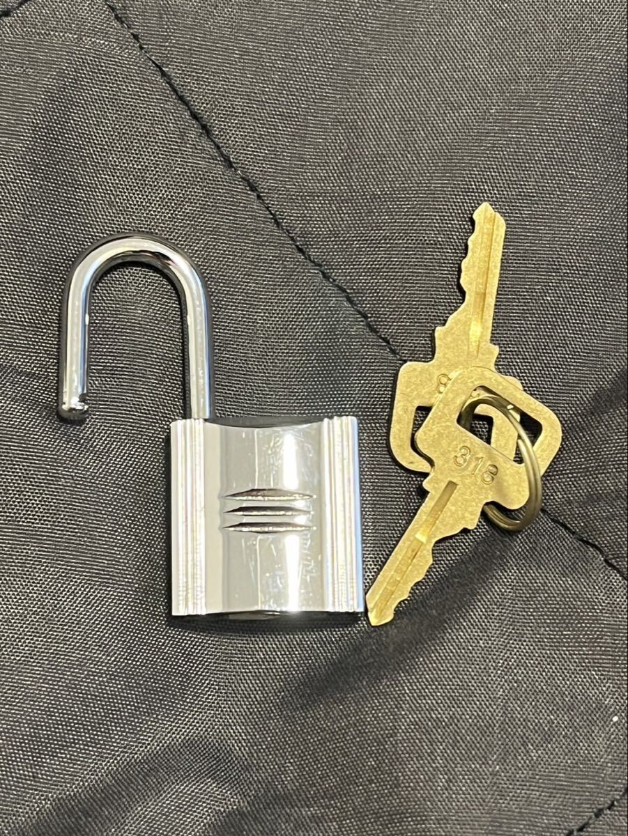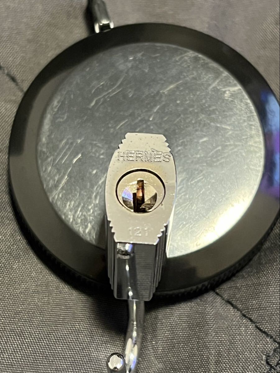 HERMES製の小型パドロックとゴールドのシリンダーキーのセット。