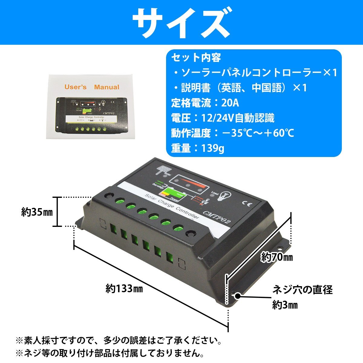 『20A』高品質! 12V/24V ソーラーパネル チャージ コントローラー バッテリー レギュレーター コントロールチャージャー