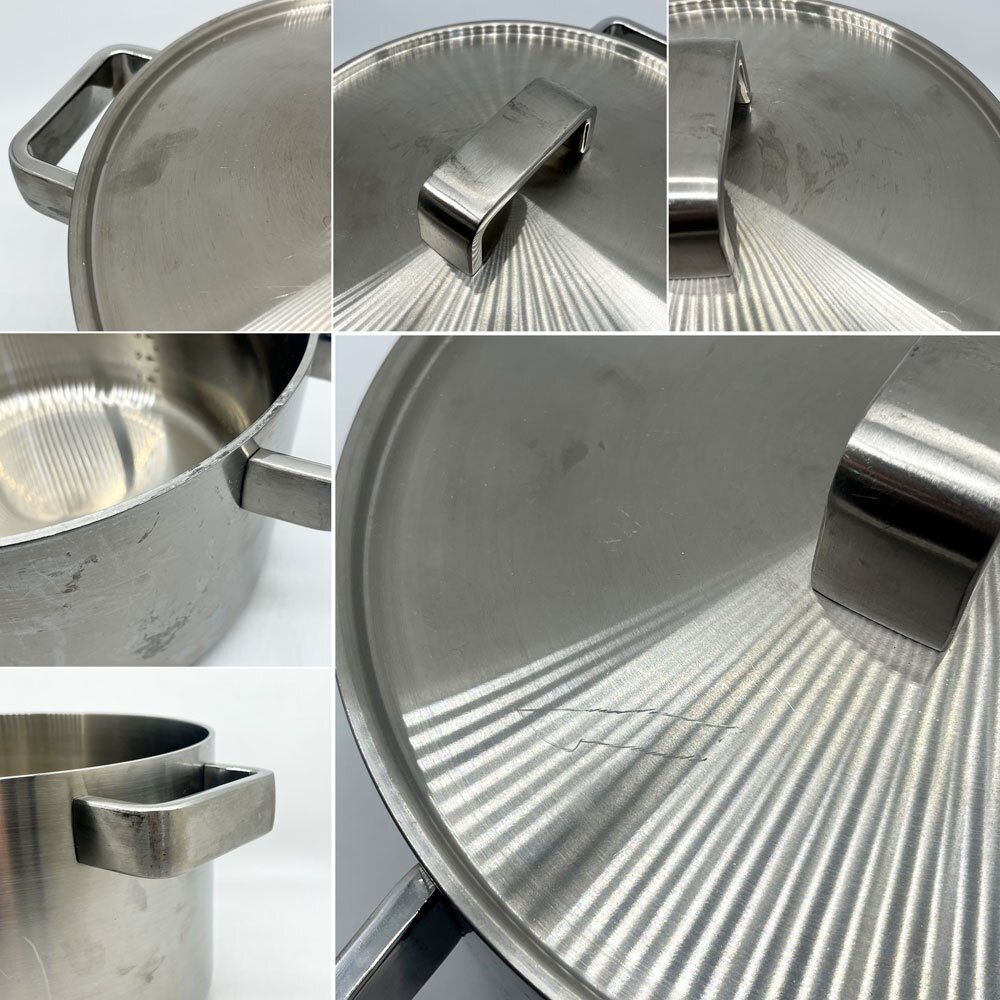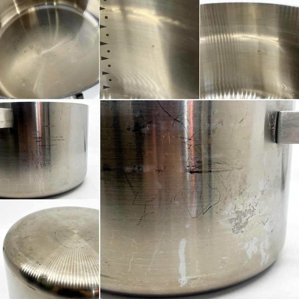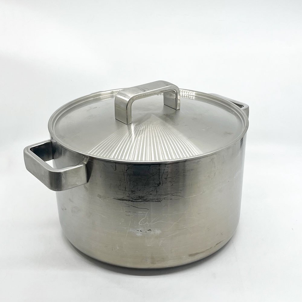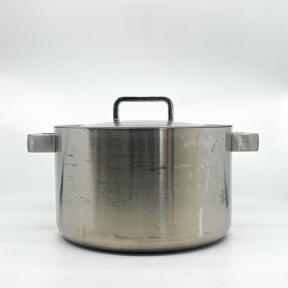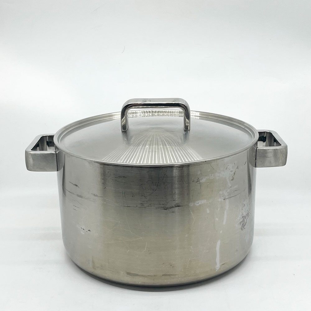 | コメント | 1790年にフィンランドで設立されたカトラリーおよび調理器具の老舗メーカー “ ハックマン HACKMAN ” 。 こちらは1998年にスウェーデンのデザイナー " ビヨルン・ダールストローム|Bjorn Dahlstro " により製作されたシリーズ " ツールズ Tools "よりステンレス製キャセロールです。 熱伝導の高いアルミニウムをステンレスで挟んだ耐久性の高い三層構造。 見た目の堅牢でシンプルな造りはスタイリッシュにキッチンを彩り、木製家具とも親和性が伺えるお洒落なテイスト。 今回はカレーやパスタ、スープ類などの料理に使い勝手の良い8Lサイズ。 ひとつ買えば一式揃えたくなるような魅力溢れる一品です。 ※当ショップは、主にリサイクル品を取り扱っております。基本的にUSED品である事をご理解頂き、ご入札をご検討下さいませ。 |