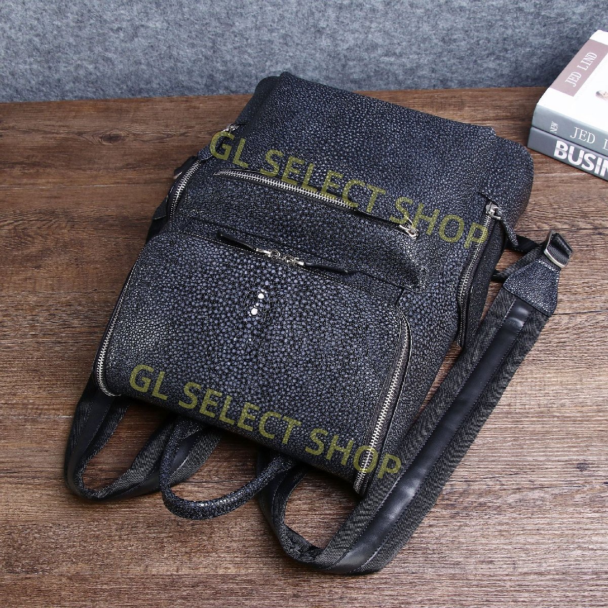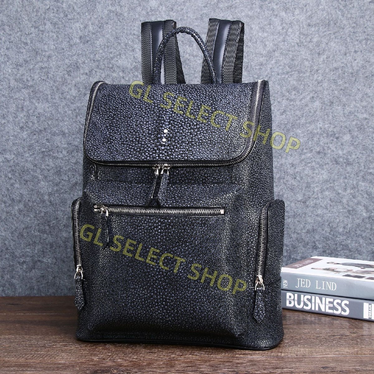 メンズリュックサック エイ革 光沢面パールフィッシュ柄 大容量トラベルバッグアウトドア&ビジネス対応