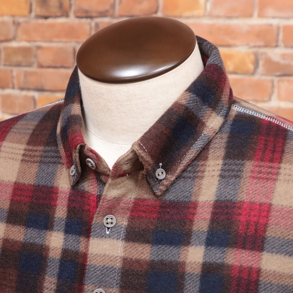 1円/秋冬/GREENCLUBS/4(L)サイズ/長袖ポロシャツ 起毛 フリース チェック ボタンダウン グリーンクラブ 新品/ブラウン×レッド/mb375/