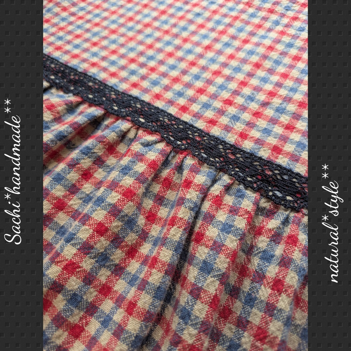 先染めcottonリネンのトリコロールチェックの生地で作成致しました。しっかりしていながらしなやかさがありワッシャー加工の生地がとても素敵です♪