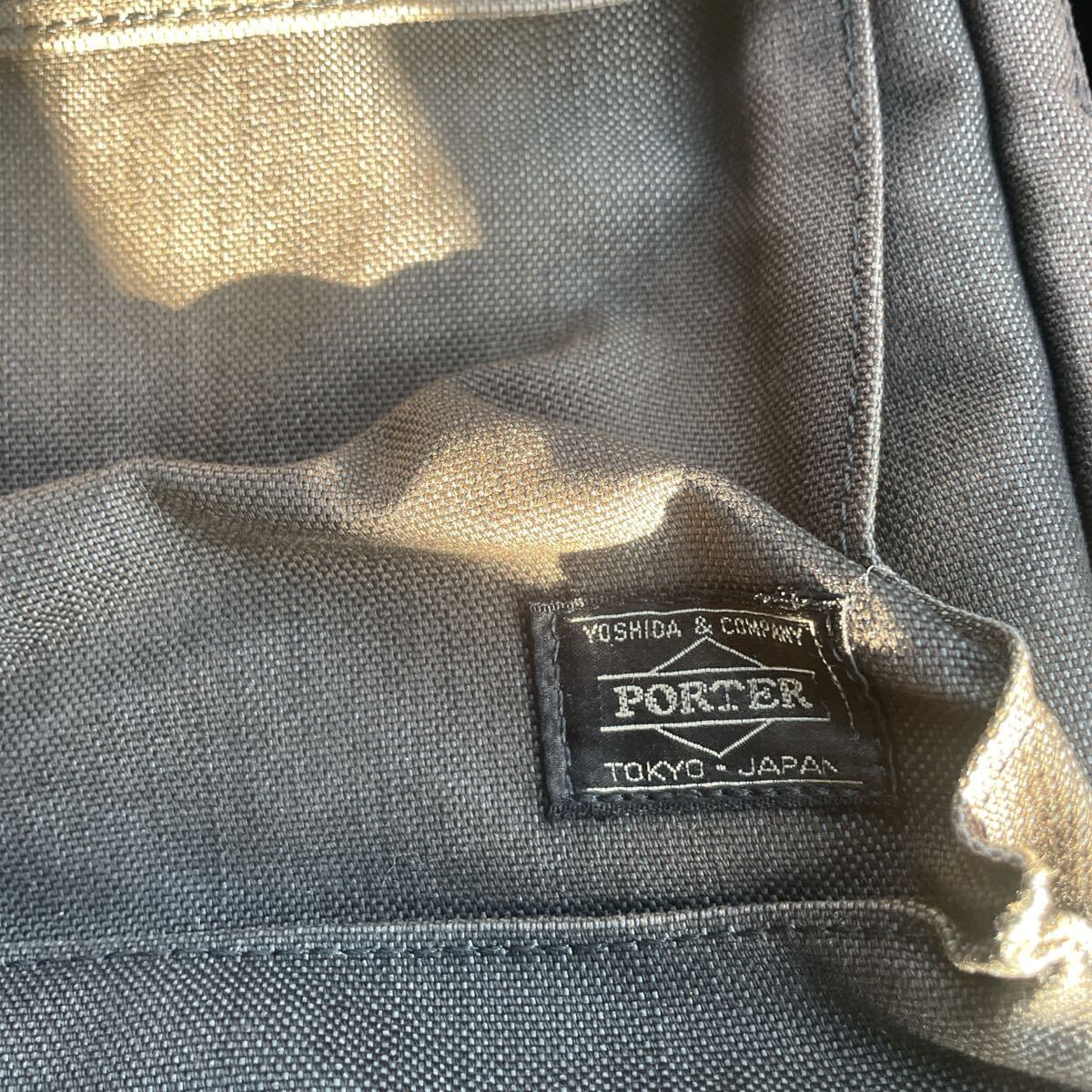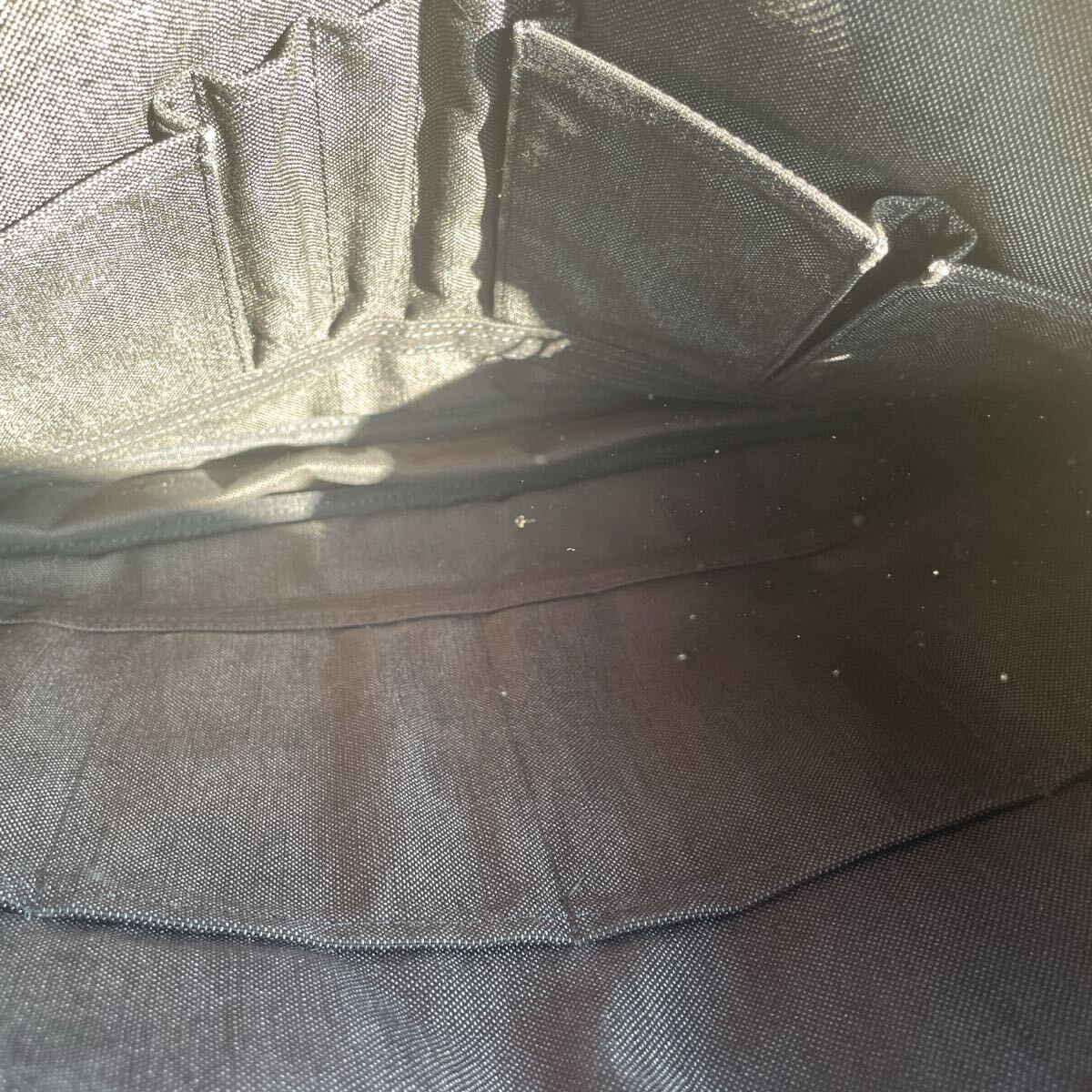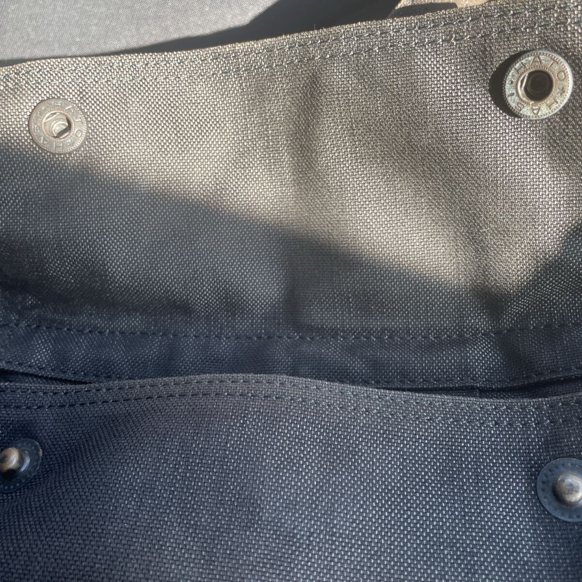 グレーのキャンバス素材で、2つのフロントポケットを備えたビジネスバッグ。