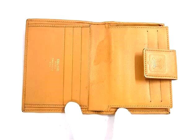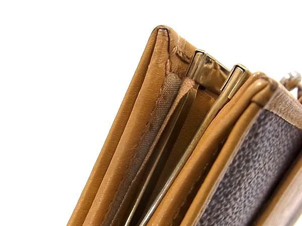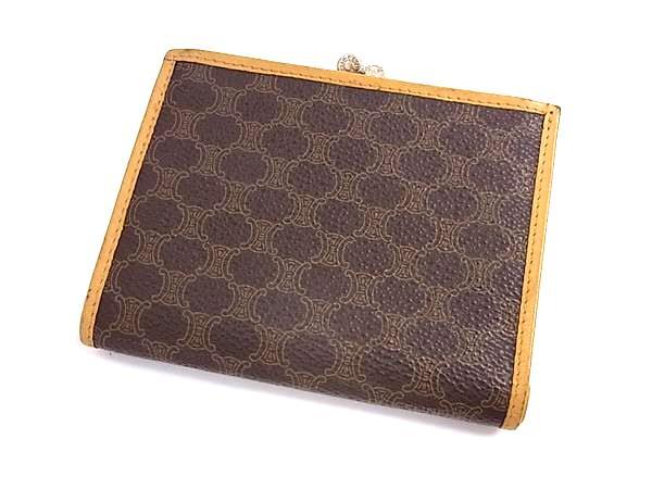 1円 CELINE セリーヌマカダム柄 PVC×レザー がま口 二つ折り 財布 ウォレット 小銭入れ 札入れ レディース ブラウン系 GA6402
