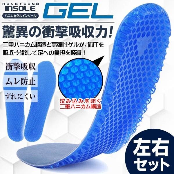 インソール 衝撃吸収 中敷き レディース 22~25cm 靴 スニーカー 足裏 ハニカム構造 両足 シューズ 送料無料 2M◇ ゲルインソール:女性用