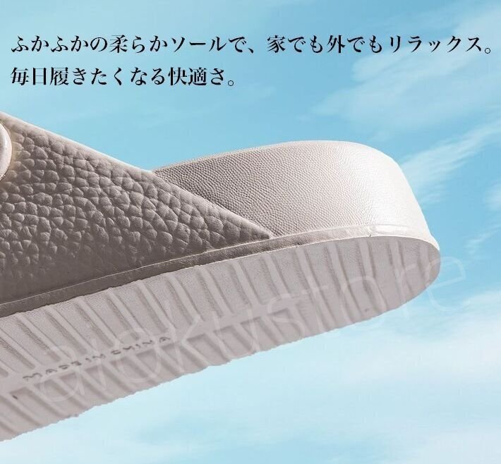 軽量でクッション性に優れたEVA素材を使用し、ふんわりとした柔らかい履き心地を実現。