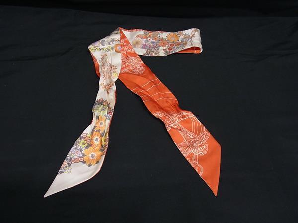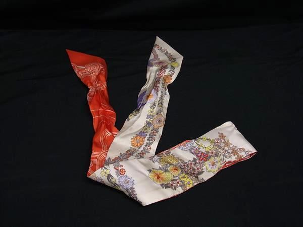 1円 ■美品■ HERMES エルメス BIRDES de GALA en fleurs シルク100% ツイリー リボンスカーフ レディース マルチカラー FU6985