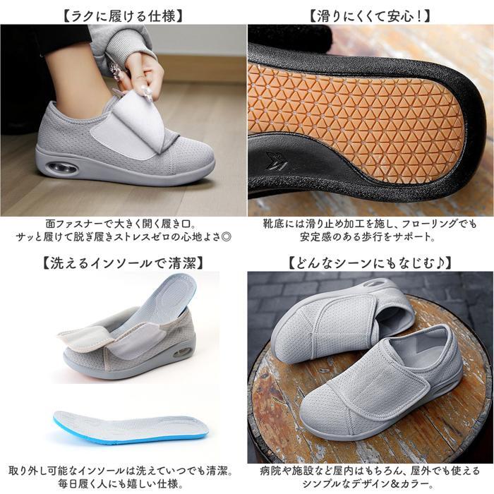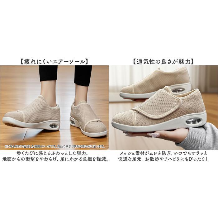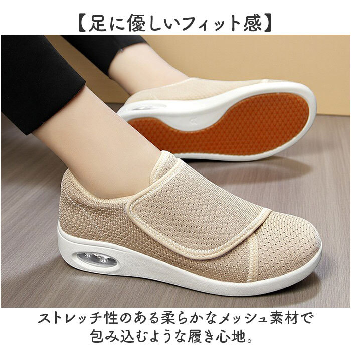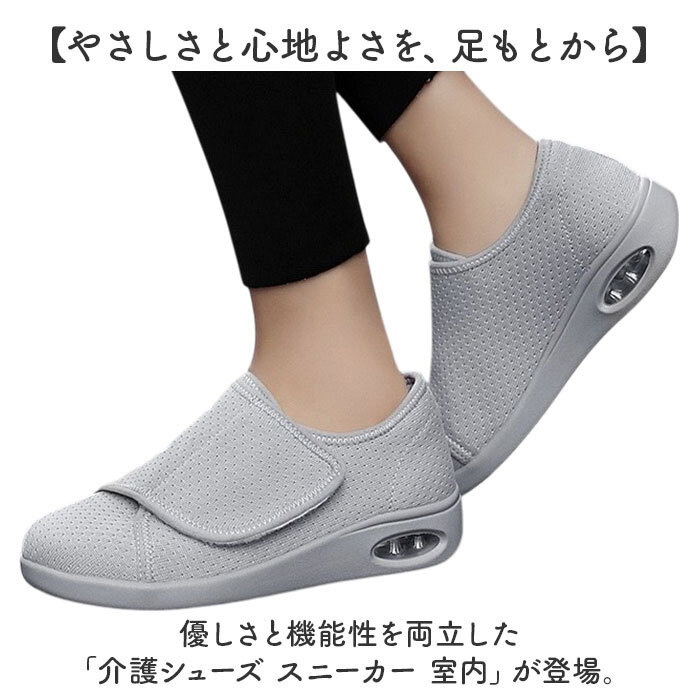 | 商品説明 | ・・【やさしさと心地よさを、足もとから】 ・優しさと機能性を両立した「介護シューズ スニーカー 室内」が登場。 ・【足に優しいフィット感】 ・ストレッチ性のある柔らかなメッシュ素材で包み込むような履き心地。 ・【疲れにくいエアーソール】 ・歩くたびに感じるふわっとした弾力。地面からの衝撃をやわらげ、足にかかる負担を軽減。 ・【通気性の良さが魅力】 ・メッシュ素材がムレを防ぎ、いつでもサラッと快適な足元。お散歩やリハビリにもぴったり! ・【ラクに履ける仕様】 ・面ファスナーで大きく開く履き口。サッと履けて脱ぎ履きストレスゼロの心地よさ◎ ・【滑りにくくて安心!】 ・靴底には滑り止め加工を施し、フローリングでも安定感のある歩行をサポート。 ・【洗えるインソールで清潔】 ・取り外し可能なインソールは洗えていつでも清潔。毎日履く人にも嬉しい仕様。 ・【どんなシーンにもなじむ♪】 ・病院や施設など屋内はもちろん、屋外でも使えるシンプルなデザイン&カラー。 |