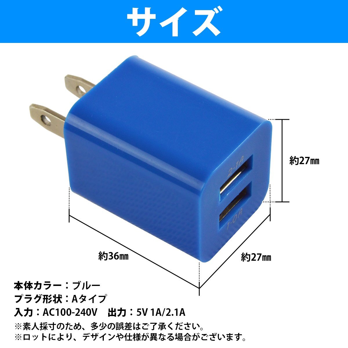 スマートフォン 充電器 ACアダプター USBポート 2口 2.1A ブルー iphone スマホ 充電 USB2ポート コンセント コネクター