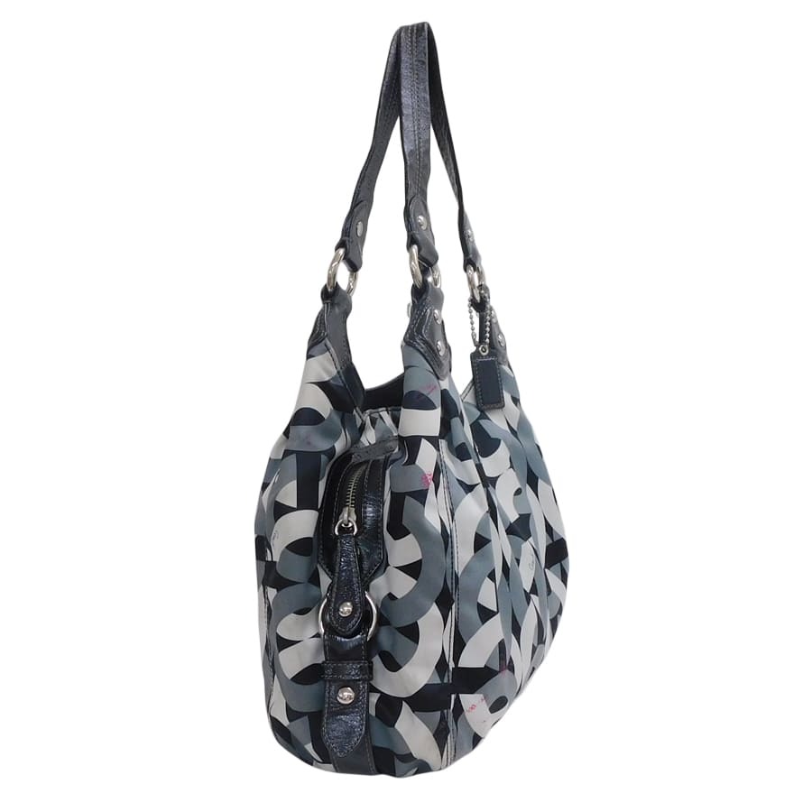 1円■コーチ/ハンドバッグ/14420/オプアート/マルチカラー/サテン×レザー/レディース/お出掛け/COACH ■E.Bip.An-14[中古]