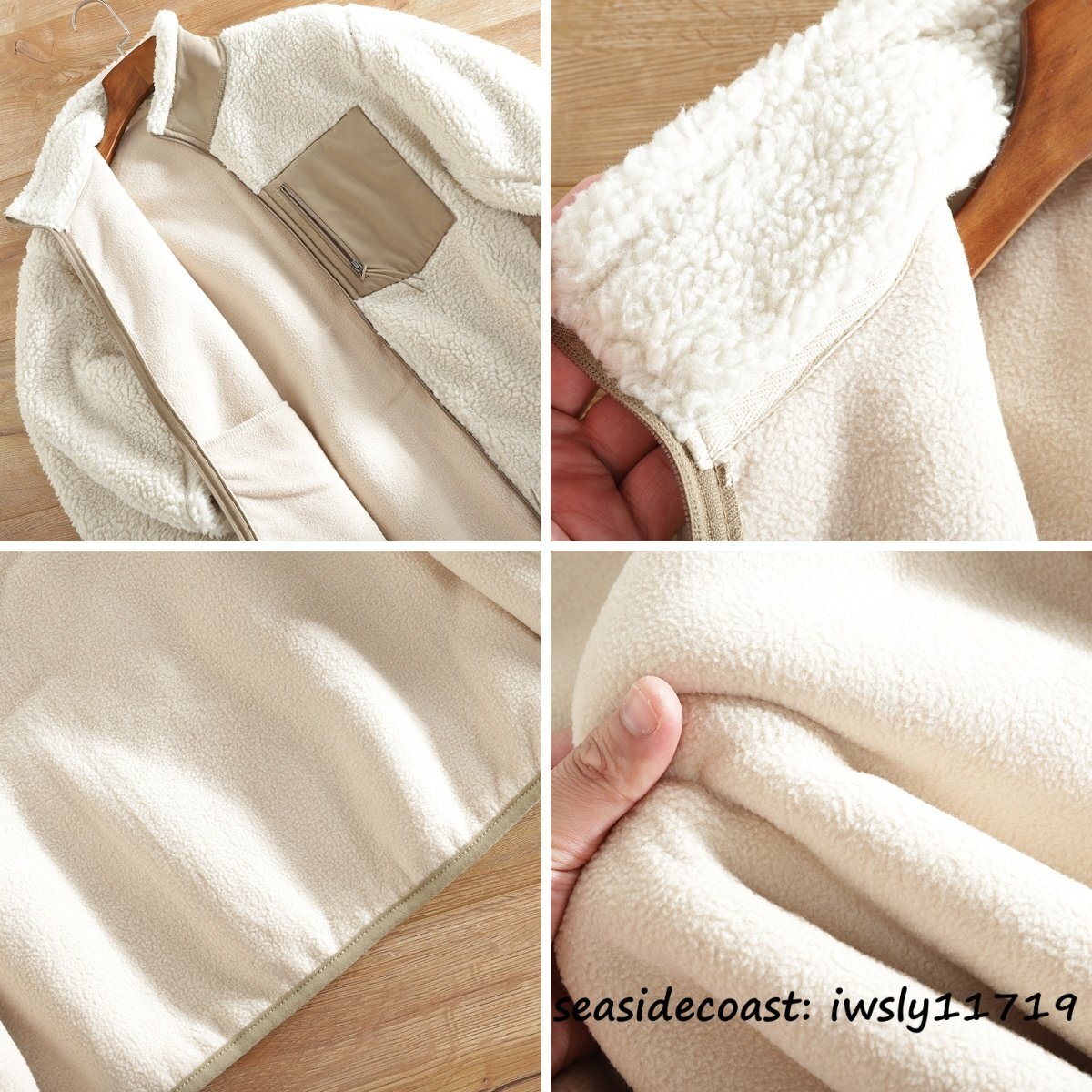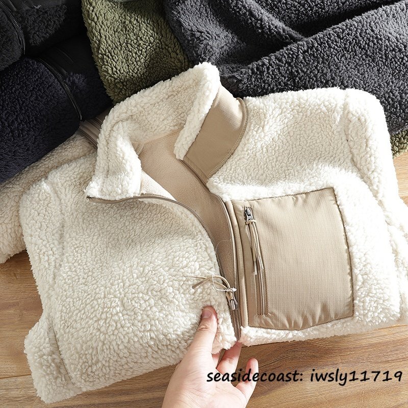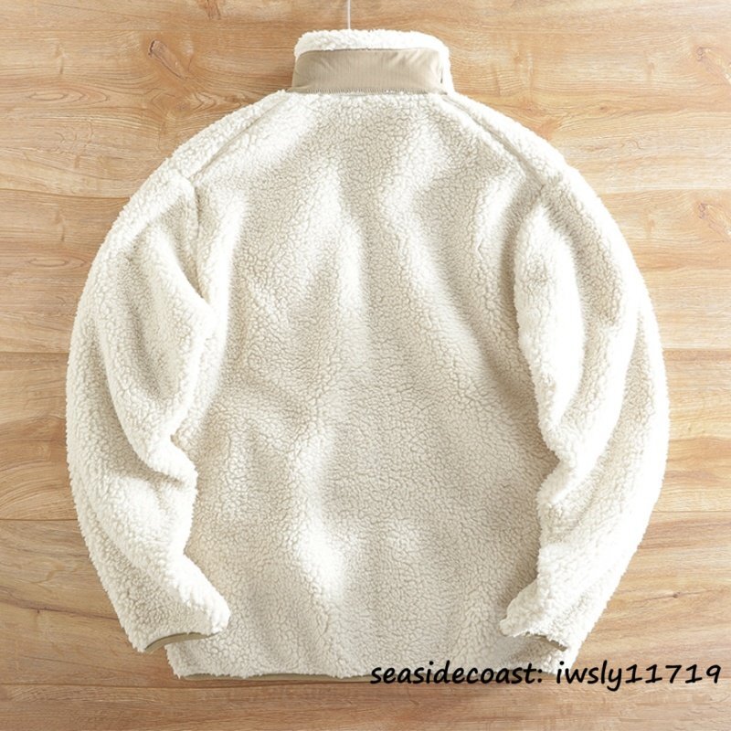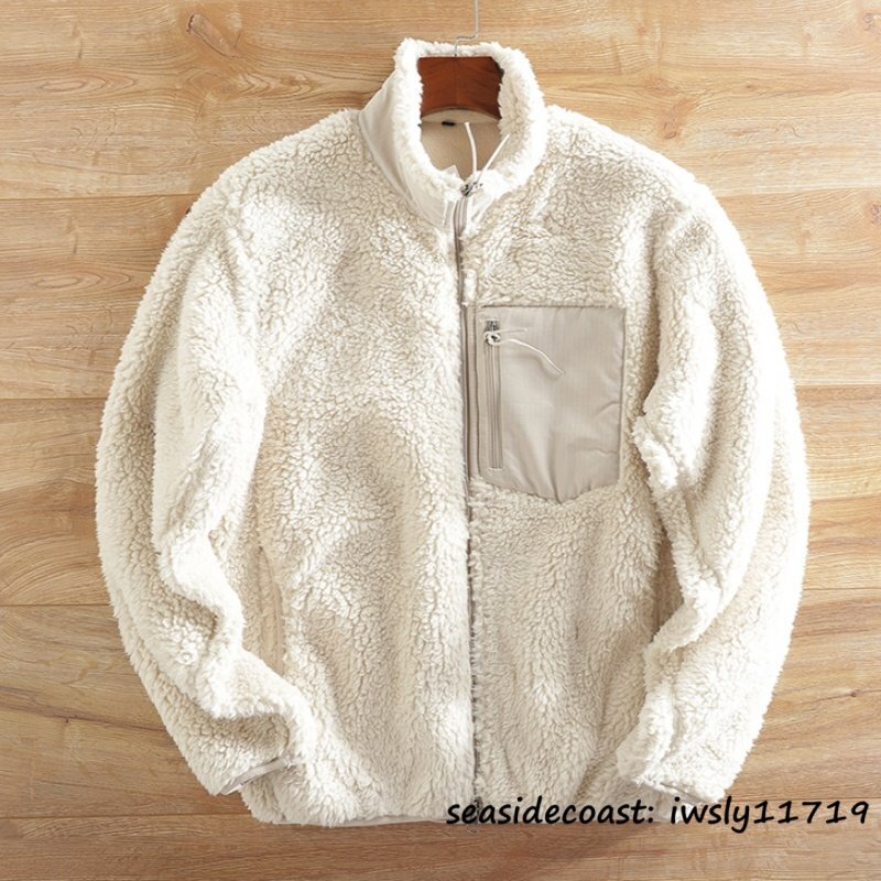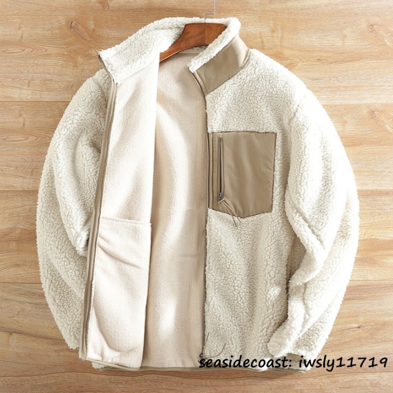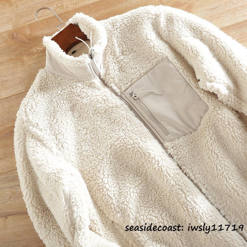 新品■ボアフリースジャケット ブルゾン 切替 スタンドカラー フェイクボア ジャケット 秋冬 裏起毛 防風防寒 厚手 保温 冬服 ホワイト S