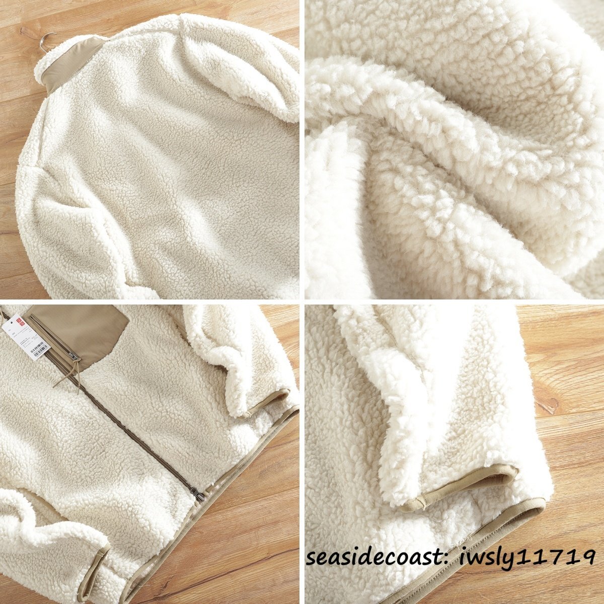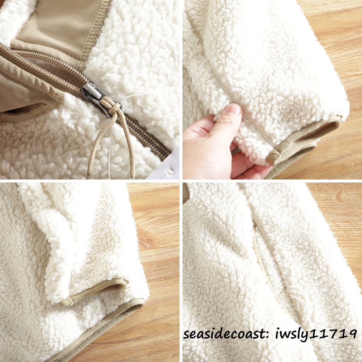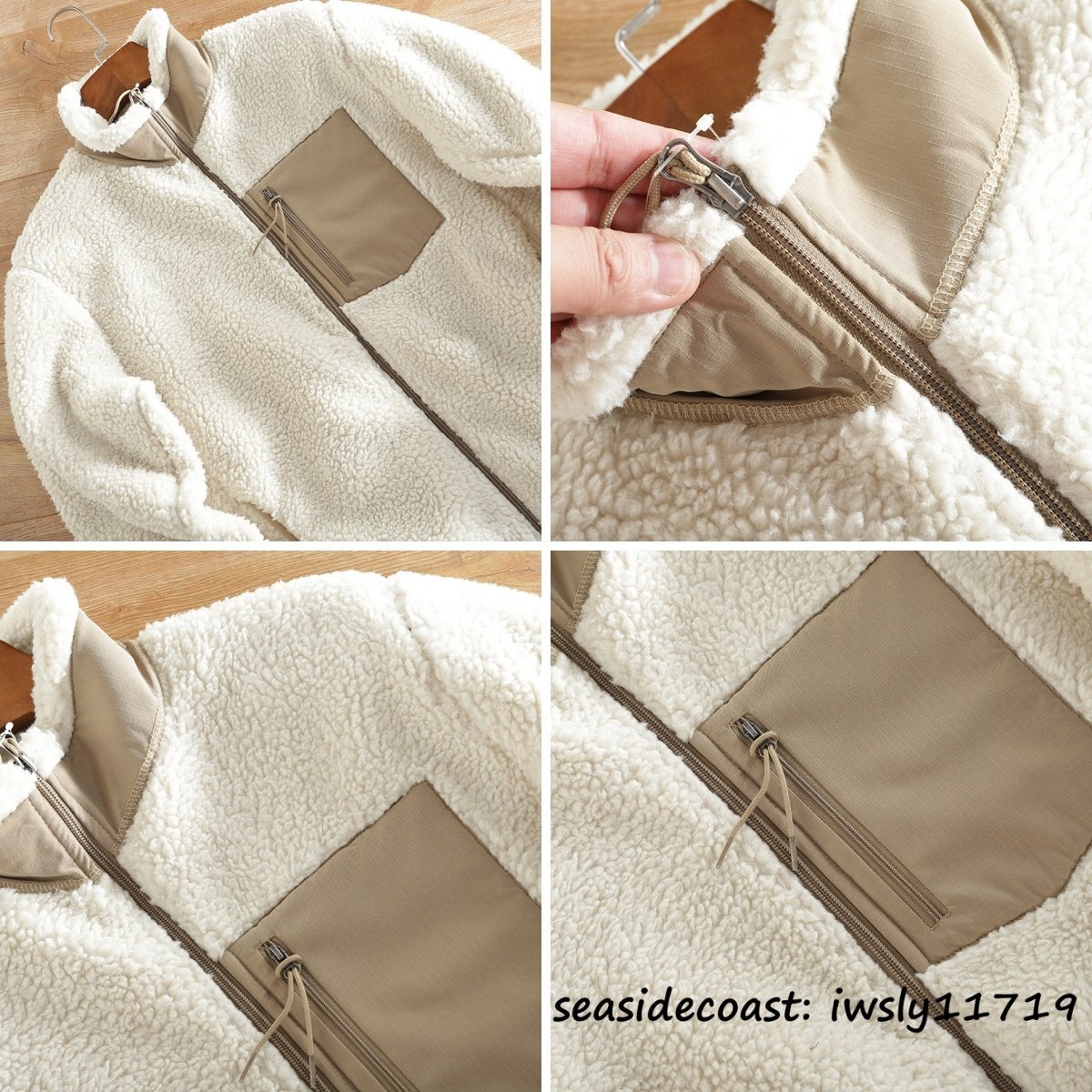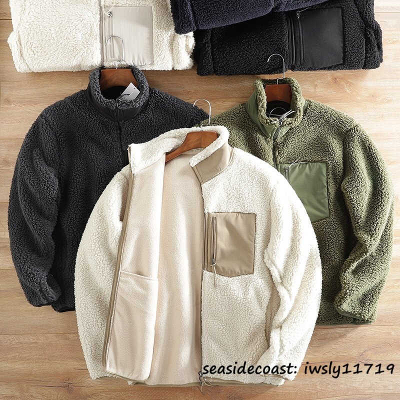 新品■ボアフリースジャケット ブルゾン 切替 スタンドカラー フェイクボア ジャケット 秋冬 裏起毛 防風防寒 厚手 保温 冬服 ホワイト S