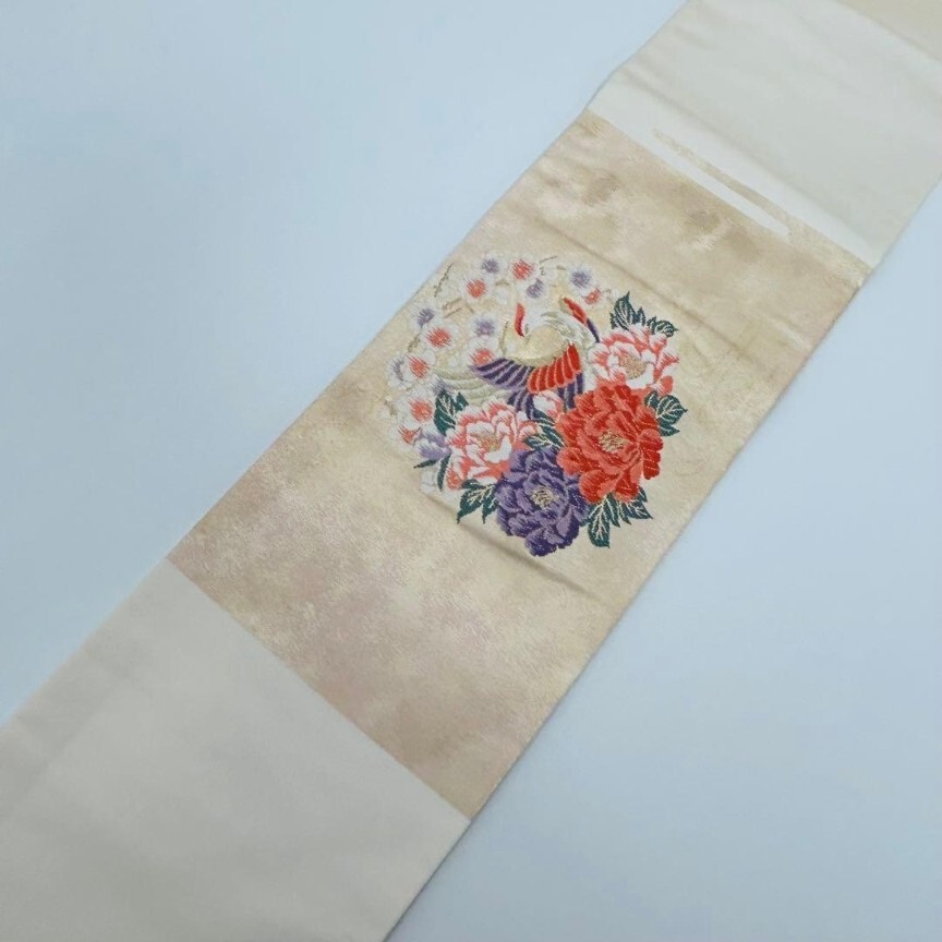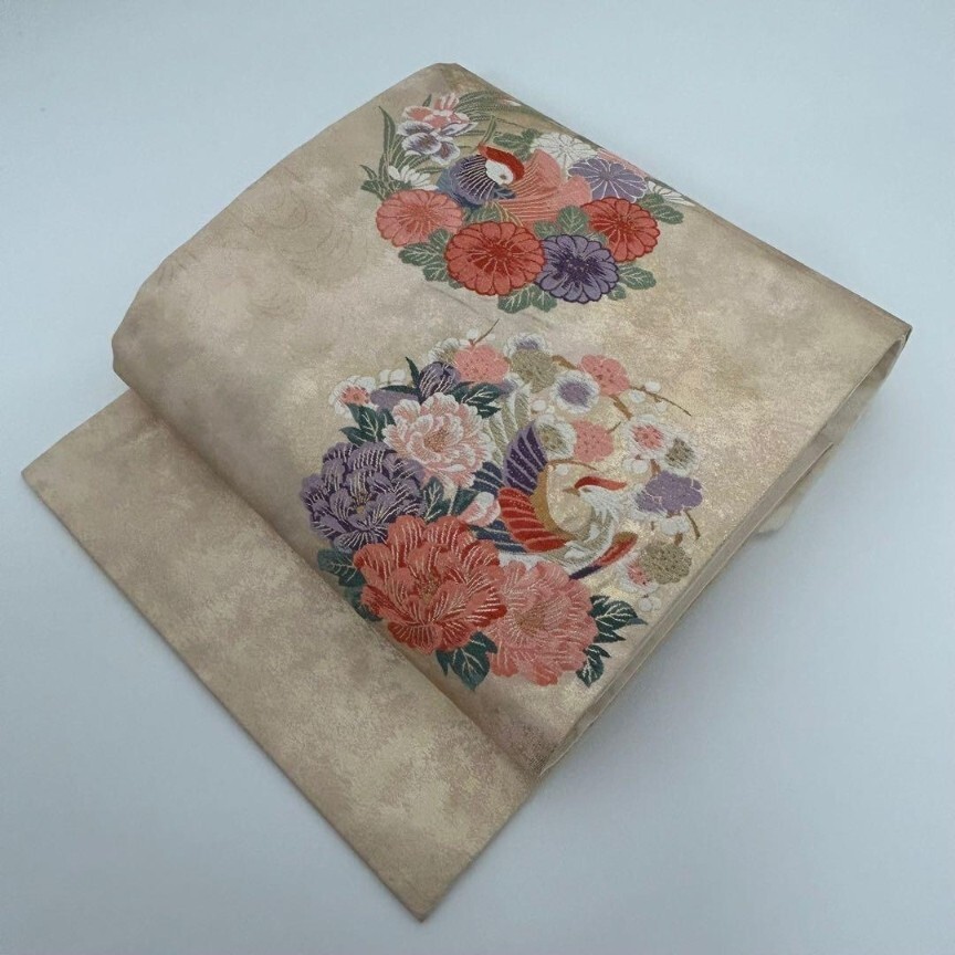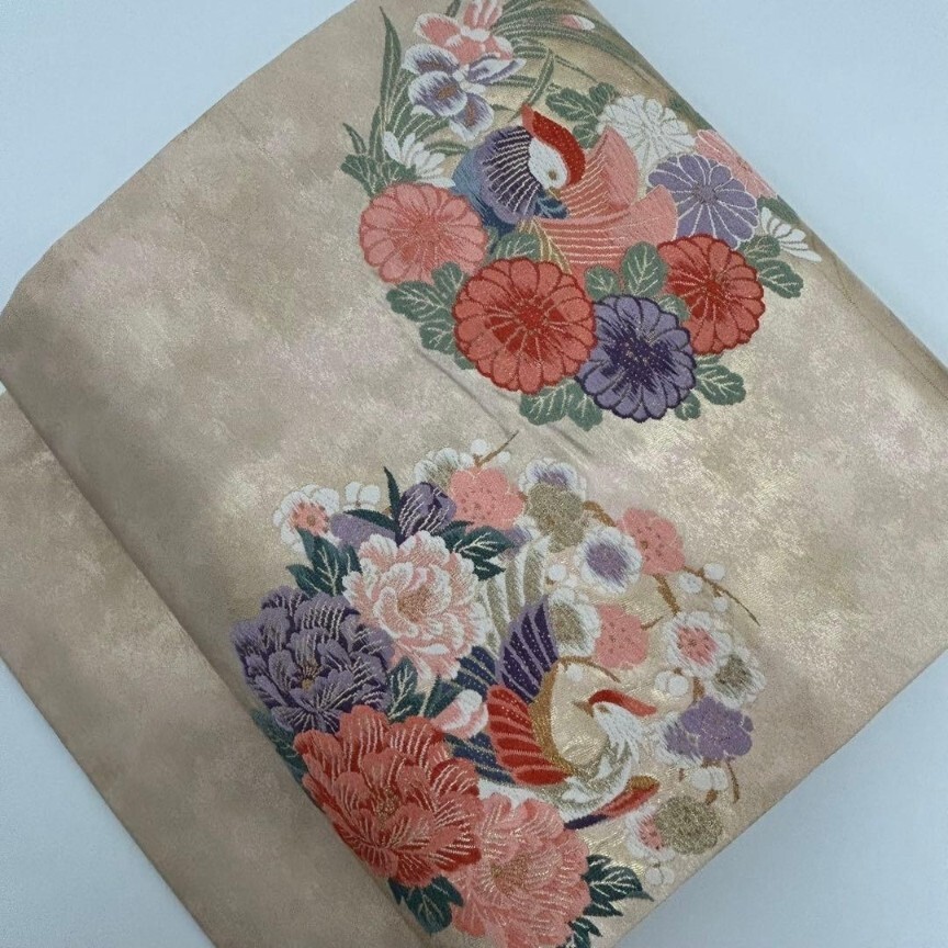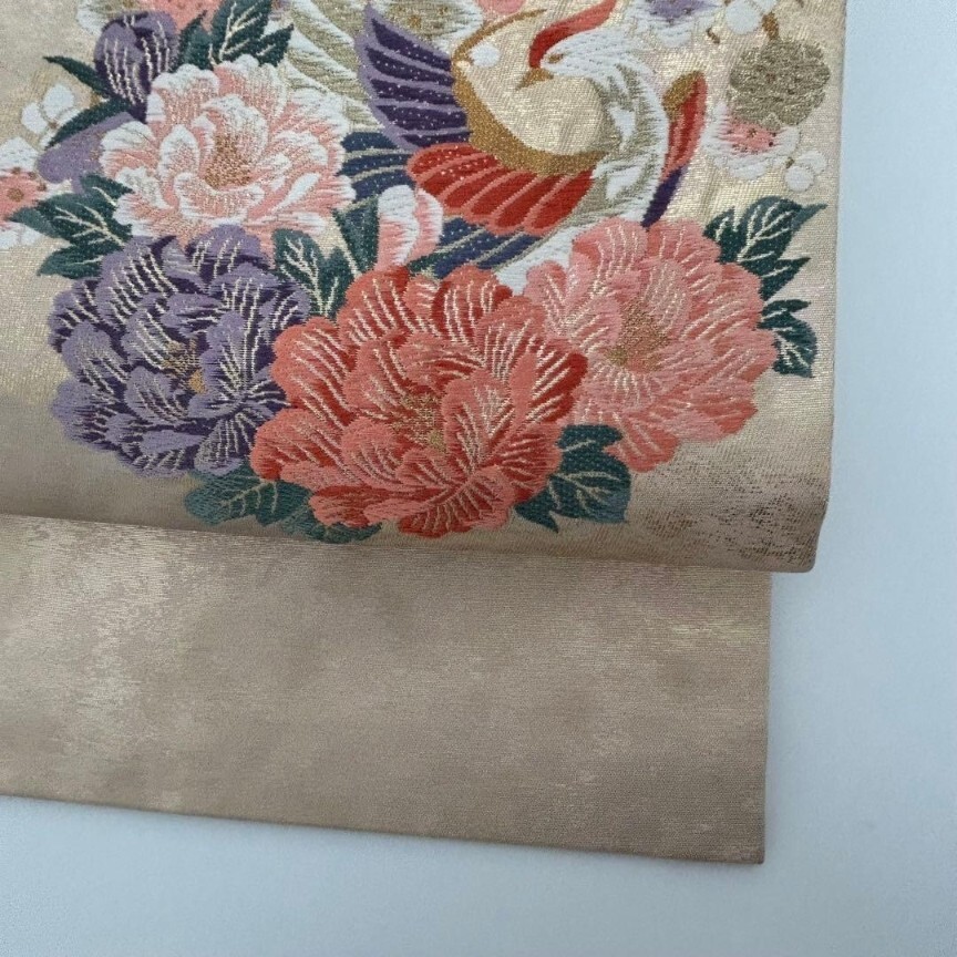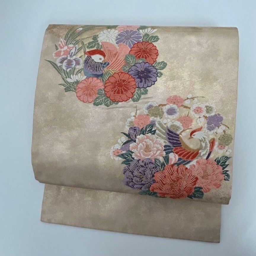 【楓】名古屋帯 唐織 鳥 花柄 引泊 素敵なデザイン 九寸 正絹 KU-7119