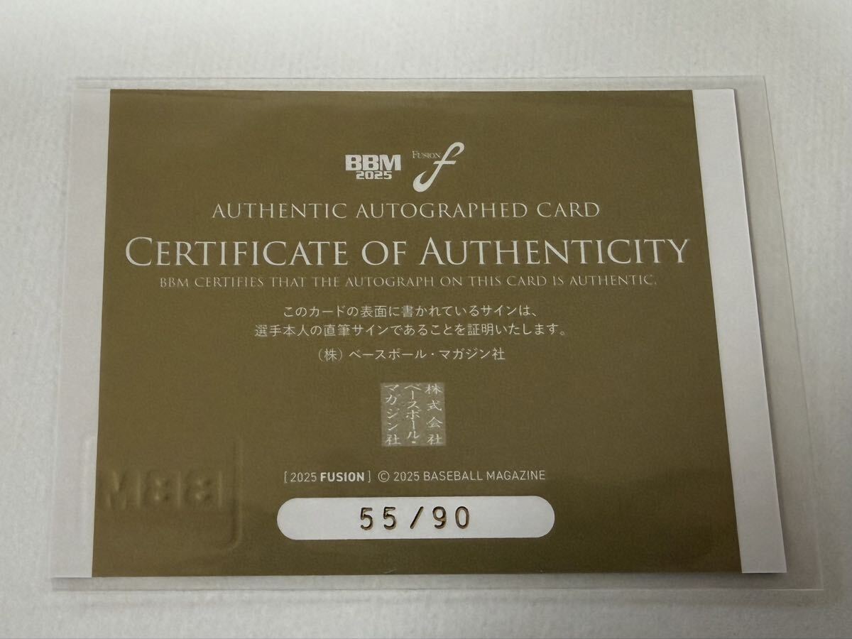 90枚限定 平松政次 BBM 2025 FUSION 横浜大洋ホエールズ 直筆サイン Auto 55/90
