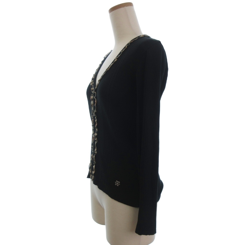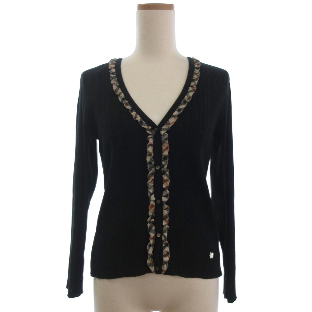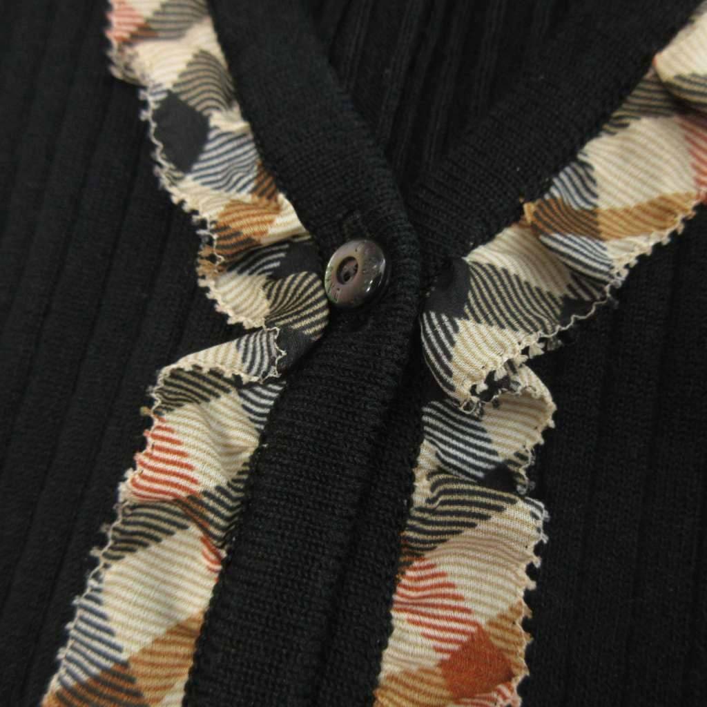 ダックス DAKS Vネック ニット カーディガン 薄手 フリル チェック 黒 ブラック 38 レディース