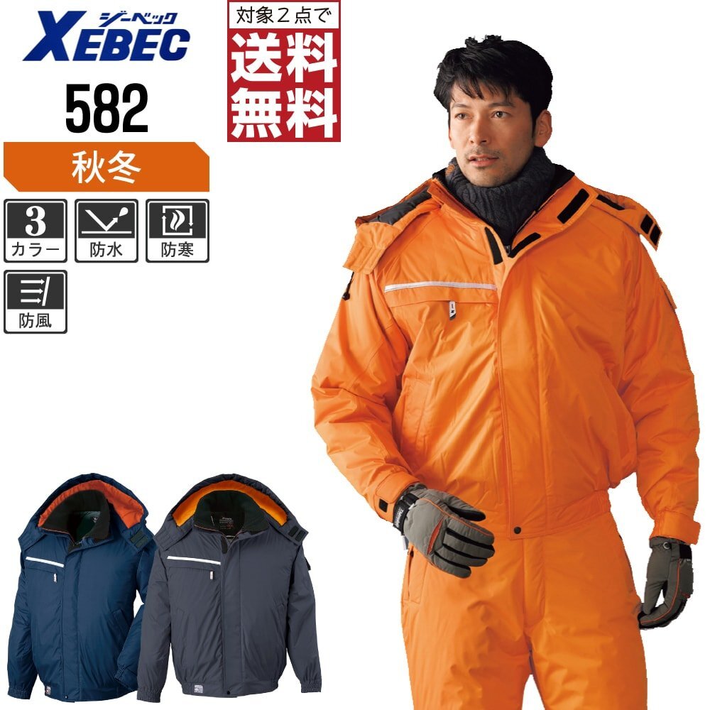 ジーベック 秋冬 中綿 防水 防寒 ブルゾン 脱着式フード 防風 保温性も抜群 582 色:チャコールグレー サイズ:LL ★ 対象2点 送料無料 ★