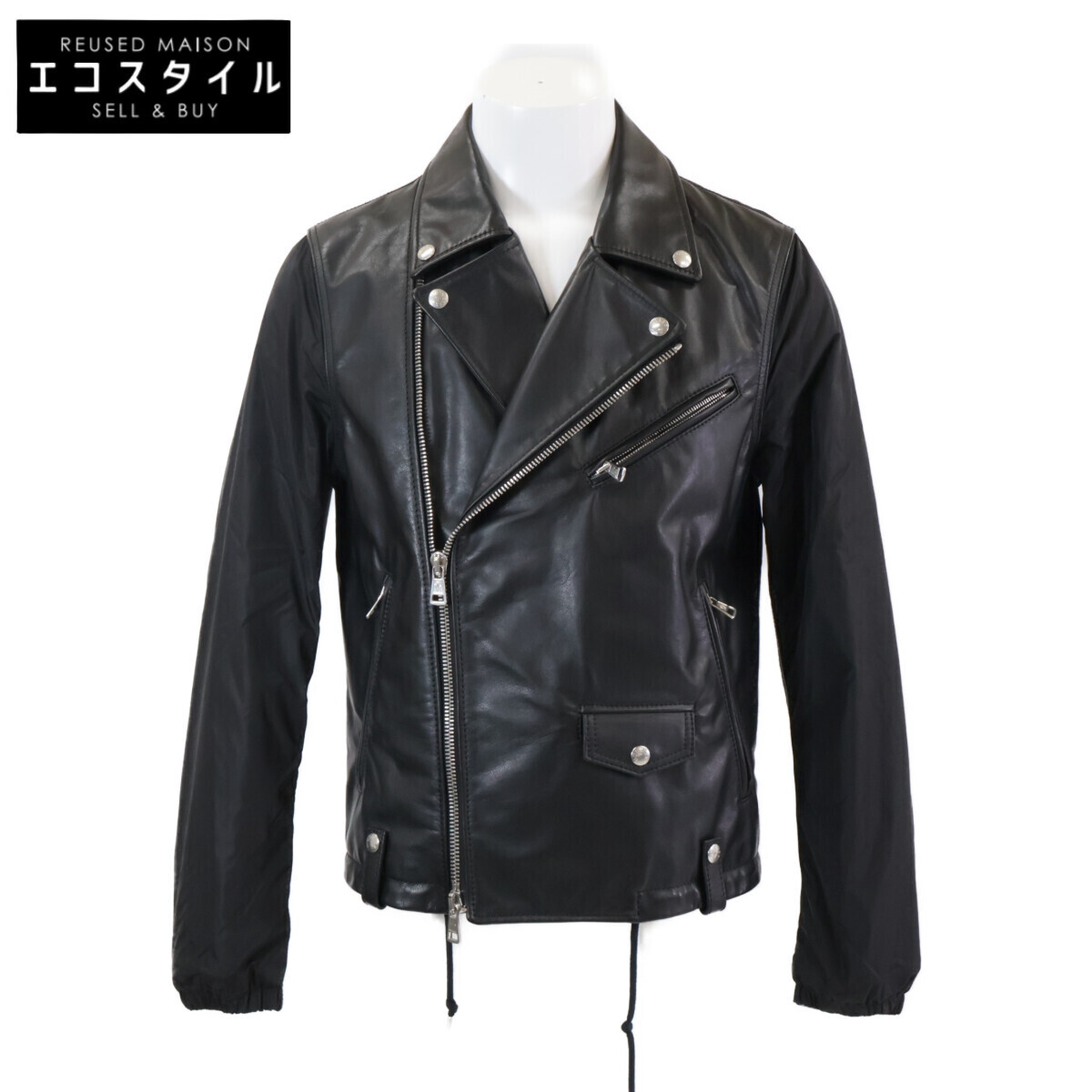 【美品/オークション】MONCLER モンクレール B20914081680 MASSART レザー/ダウン切替 ジャケット 2 ブラック メンズ