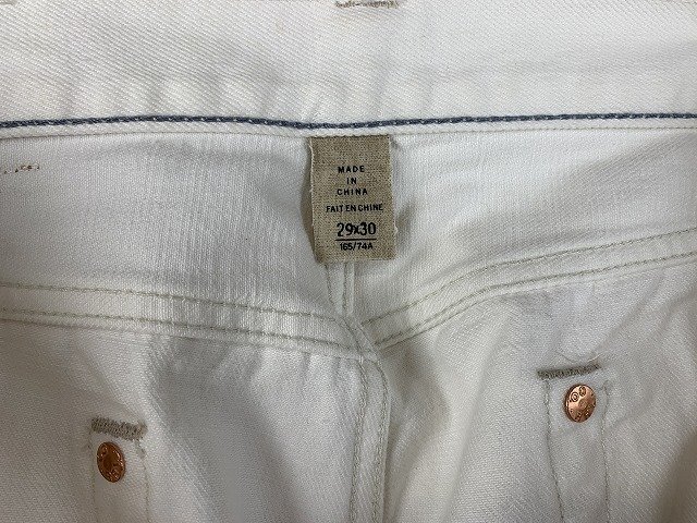 | 未使用品ですがシミと色焼けのような変色があります。大きなダメージはありません。写真にてご確認ください。 ※ 状態は、弊社基準により表記をさせて頂いております。 ※ リユース商品の為、表示しきれないダメージなどある場合もございます。 ※ 実店舗業務の運営上、質問にお時間をいただく場合や主観的なご質問にはお答えできかねる場合がございます。 サイズ | | サイズ : 29×30 【ウエスト】 : 38cm 【股上】 : 23.5cm 【股下】 : 78cm 【わたり】 : 29cm 【裾幅】 : 28cm すべて平置きでの採寸となっております。 素人採寸ですので、ご参考程度にお願いします。 付属品 | ※ 出品商品はお写真に写るものが全てとなります。 | ※ ハンガー・スタンド等、備品を用いて撮影している場合がございますが、備品は付属いたしません。 店舗名 | 朝日店 | 発送について | ゆうパック、もしくは 佐川急便、ヤマト運輸(選択は出来ません) 元払のみの発送です。管理上その他の発送方法には、対応できません。お問い合わせは、ご遠慮願います。 | お支払いについて | 落札金額 + 消費税 + 送料 のお支払いとなります。 | 送料は送料欄にて、お届け先の都道府県をご選択頂き確認をお願い致します。 ※ 離島など別途追加が必要な場合もございます。 ※【お支払方法】銀行振込・代引きには対応しておりません。 同梱について | ※ 発送の拠点が複数ございます。同梱できない場合は個別配送となりますので、ご容赦下さい。 | ご落札の流れ | ヤフオク!ストアが出品した商品を落札した場合、個人が出品した場合とは取引方法が異なります。また、ストアとの取引では商品受け取り後の受け取り連絡は必要ありません。 | >> ヤフオク! リンクはコチラ ご注意事項 | お写真は撮影時の状態です。 | 店頭にて併売しているお品はコンディションが変わる場合もございます。 購入時に著しくコンディションが変わってしまっている場合はご連絡いただければ真摯に対応致します。 お色・状態に関しては、モニター環境や、太陽光・室内ライトなどの環境により、見え方が違う事もございますので、ご理解頂ければ幸いです。 中古品ですのでノークレームノーリターンでお願い致します。 材質タグがある場合は、写真撮影しておりますので そちらでご確認願います。 他店舗でも同時に販売しておりますので、売り切れの際は ご容赦頂ければ幸いです。 |