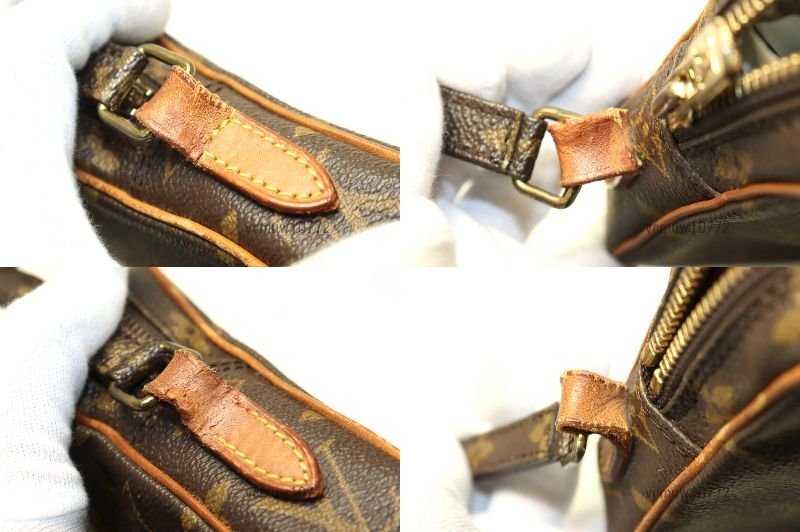 中古ですので新品と比較してすれ、小傷、色むら、若干の型崩れ、使用に問題ないレベルの糸ほつれ、金具にくすみ等ございますが写真の通りコンディション良好です。