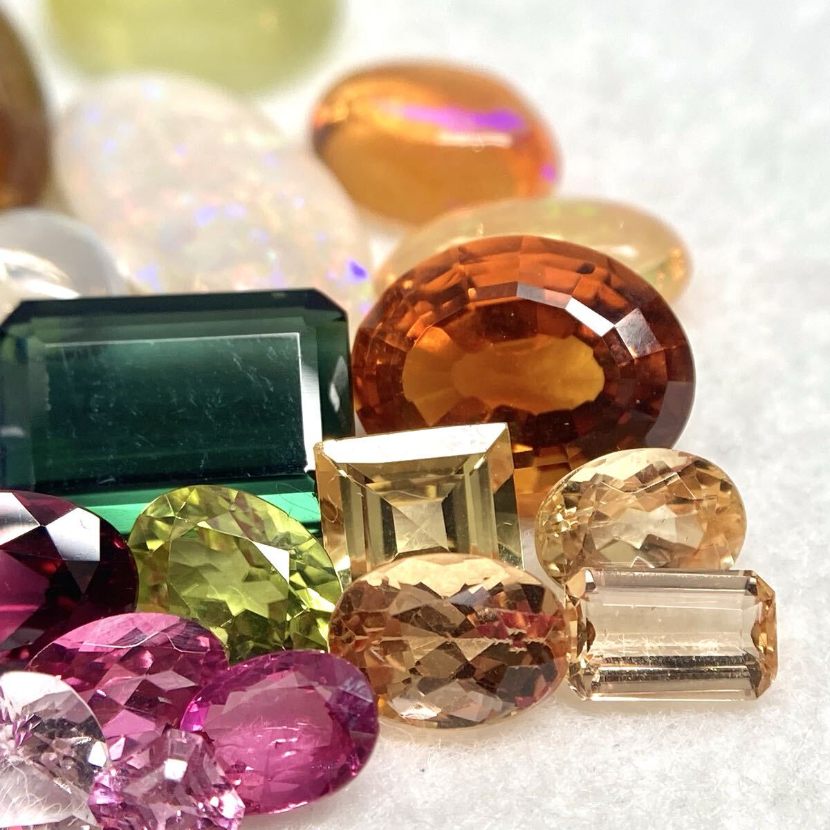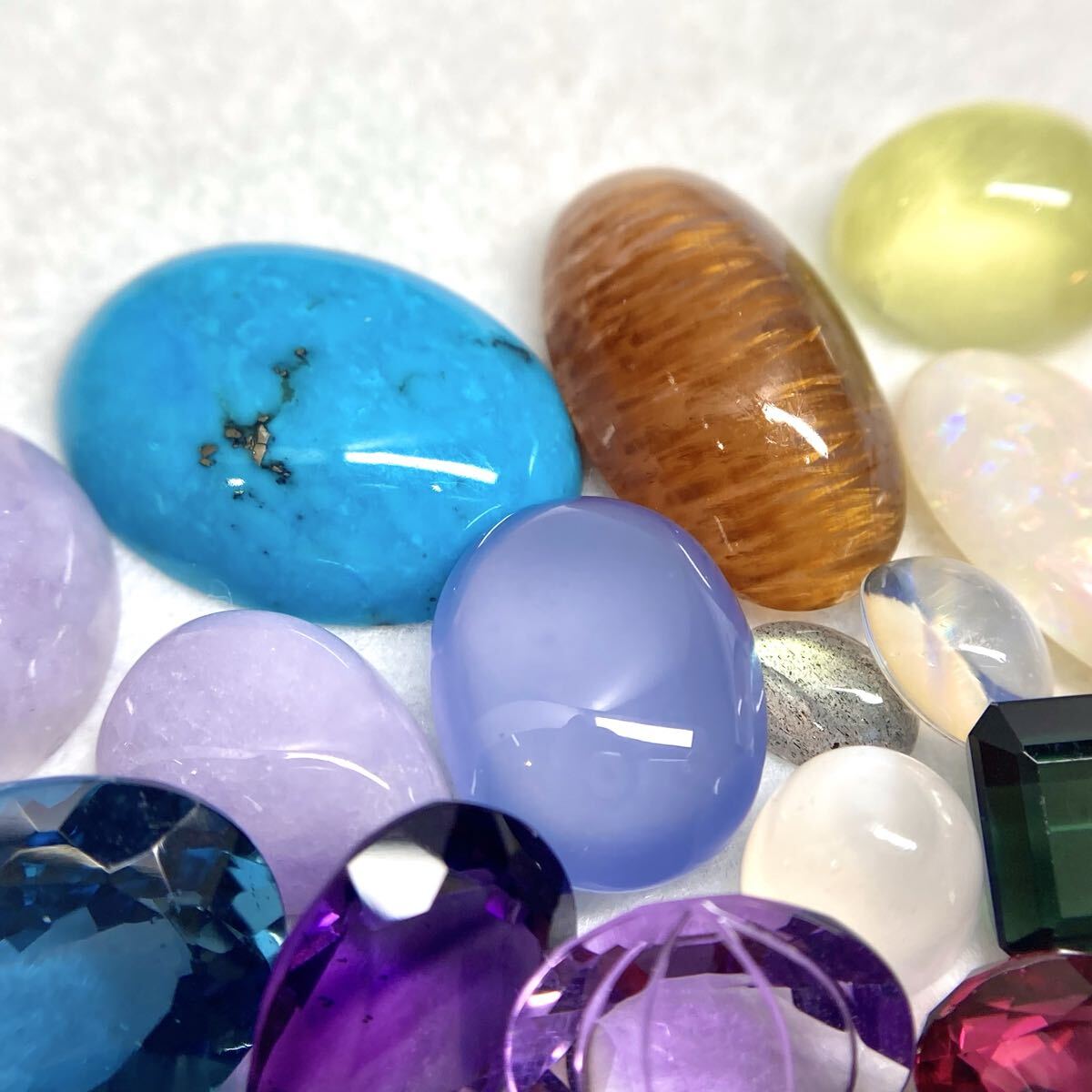 アメジスト、シトリン、トパーズ、ルチルクォーツ、翡翠、トルコ石、エメラルド、サファイア、ルビー、トルマリン、ガーネット、ファイアオパール、ホワイトオパール、ムーンストーン