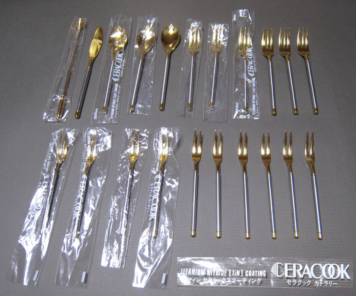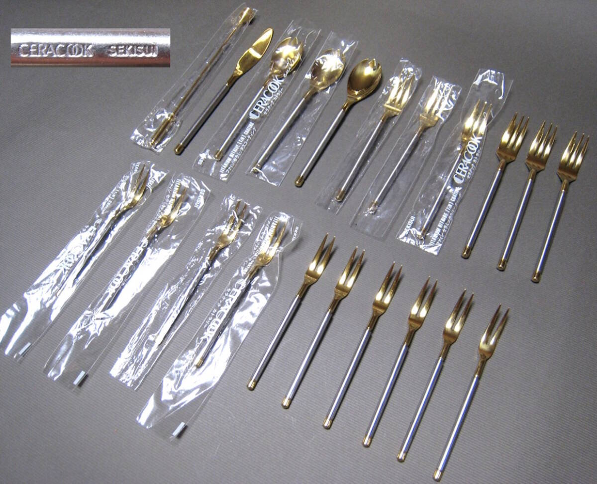 金色が美しいSEKISUIのカトラリー「セラクック」セラミックコーティング 21点です。
