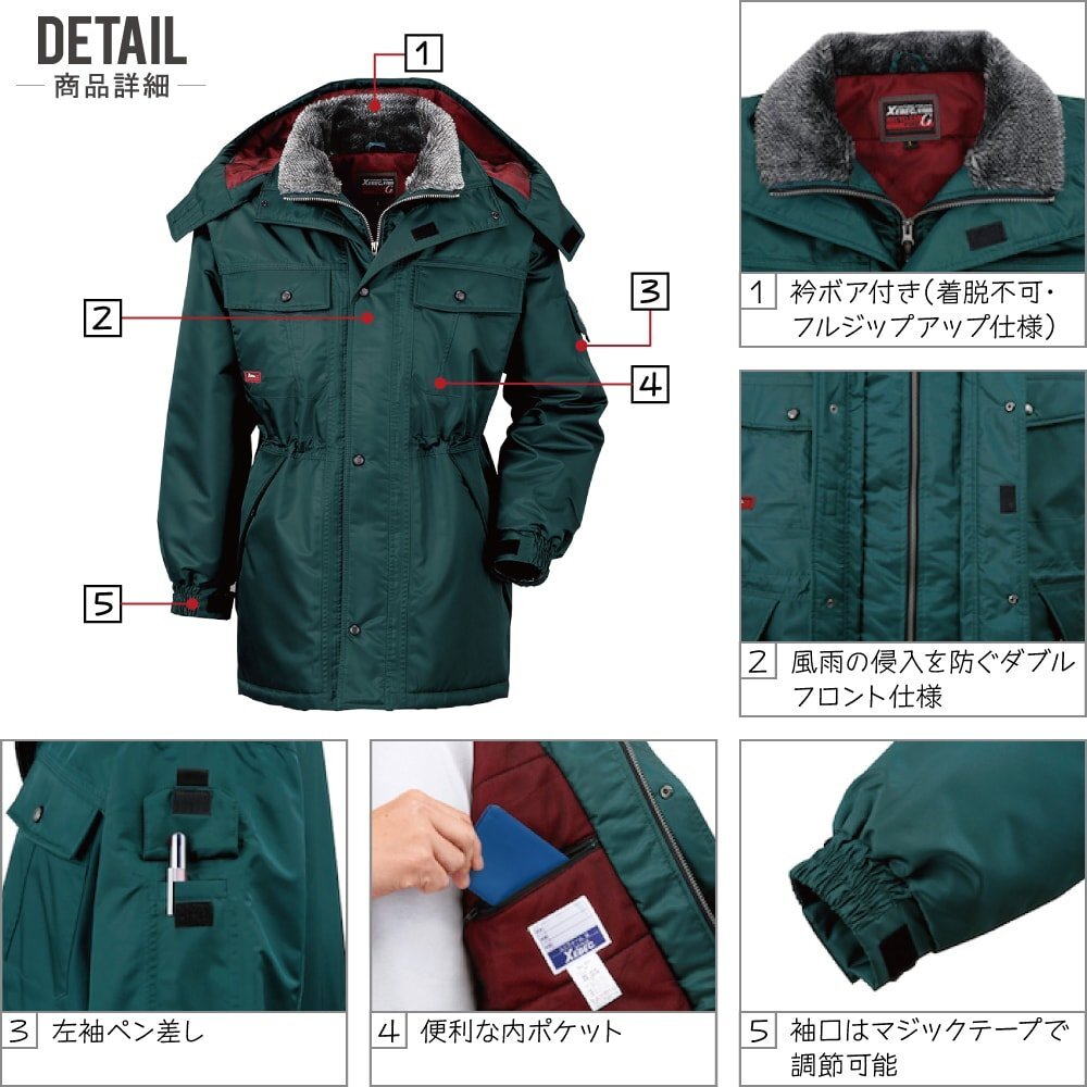ジーベック 秋冬 中綿 防水 防寒 コート 脱着式フード 防風性も抜群 571 色:コン サイズ:L ★ 対象2点 送料無料 ★
