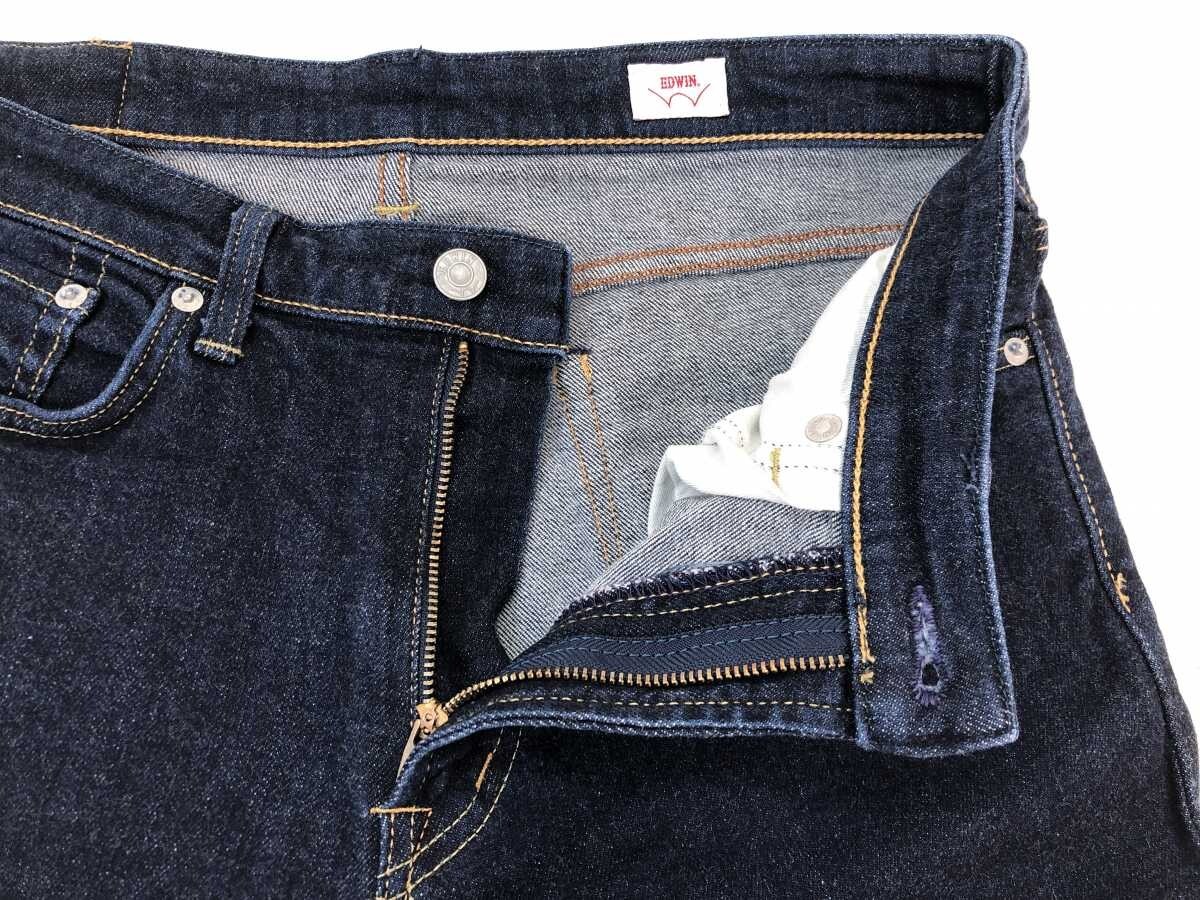 エドウィン EDWIN アメカジ ワンウォッシュ テーパード デニム ジーンズ パンツ ボトムス メンズ 牛革パッチ 日本製 ストレッチ 33 濃紺 です。