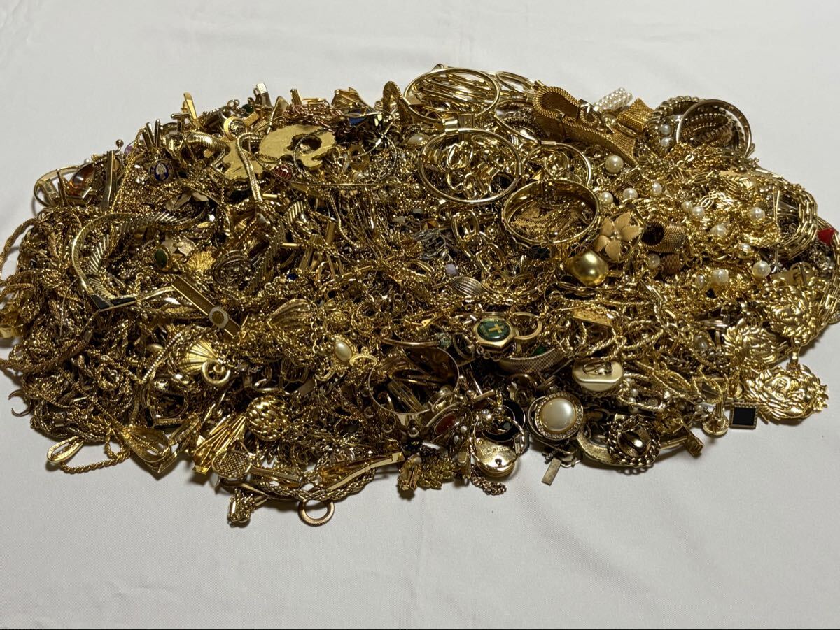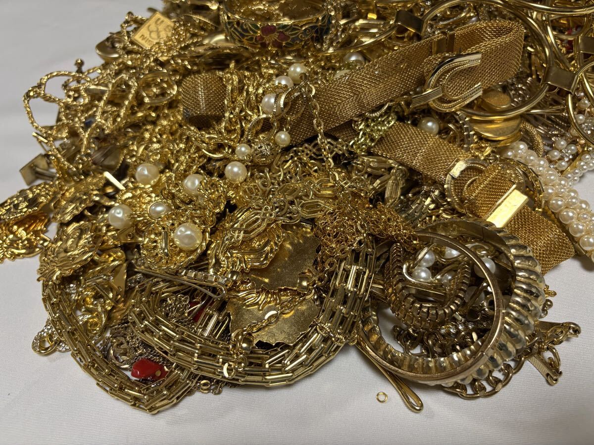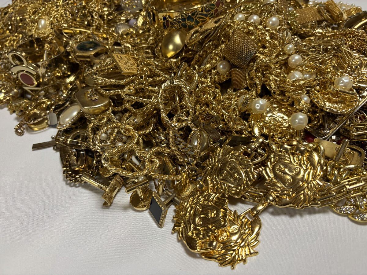 1円スタート ゴールド系 イミテーションアクセサリー大量まとめセット 金色系 総重量約10.4kg ネックレス イヤリング ブレスレットなど