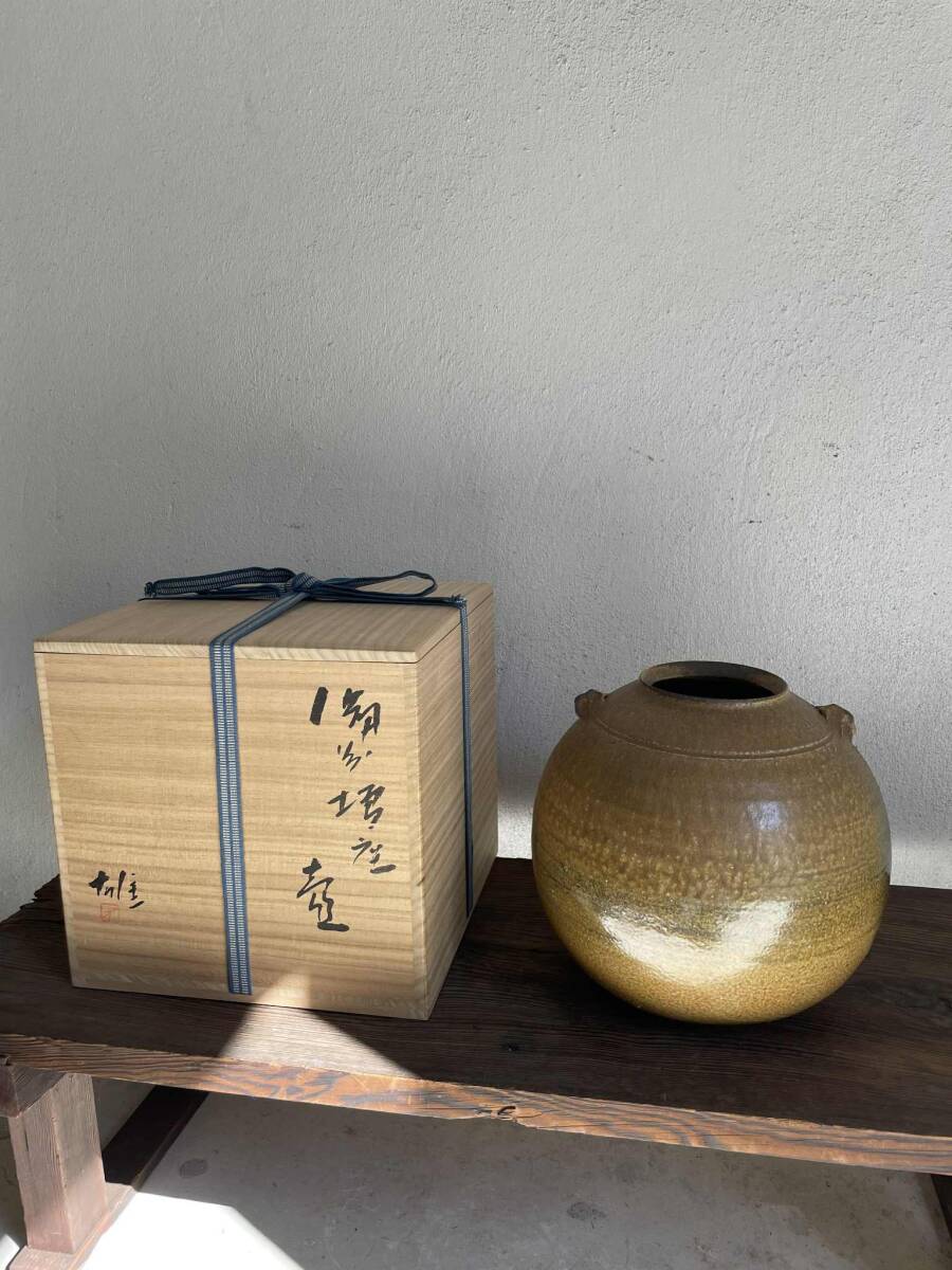 ◆人間国宝◆本物保証◆藤原雄◆擂座大壺直径30㎝◆備前焼締◆デパート購入未使用◆ 検>藤原啓 藤原和 花器 花瓶 茶道具