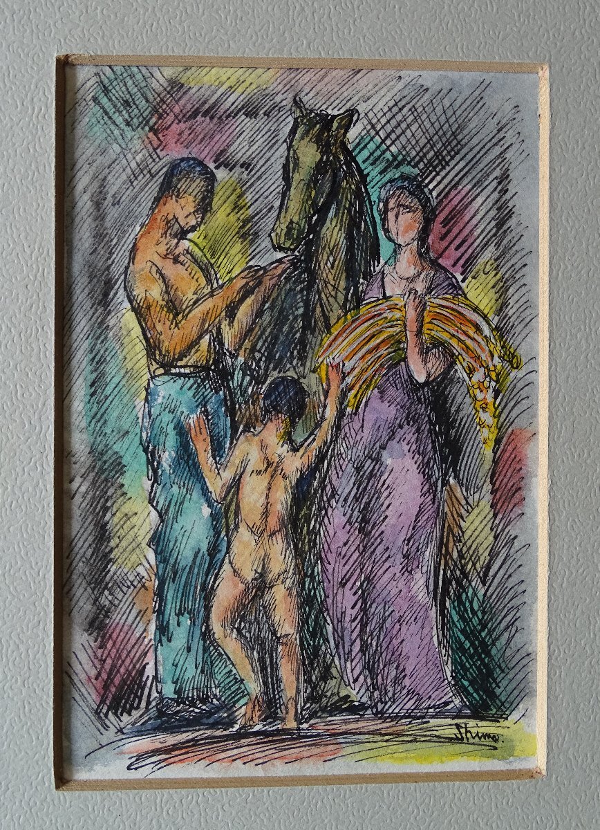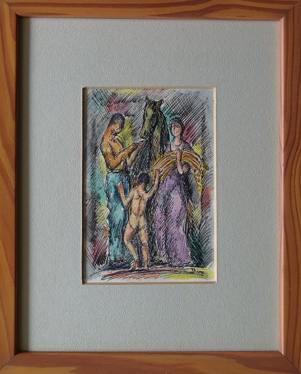 ・作者: 下間利男 ・画題: 収穫 ・技法: 水彩画(手描き) ・NO-R6-4-12.5