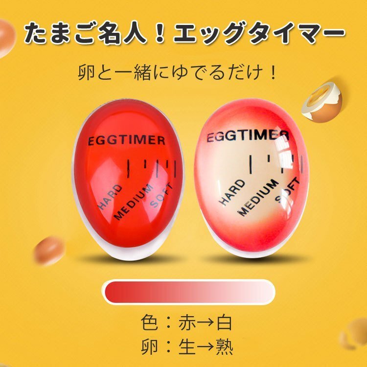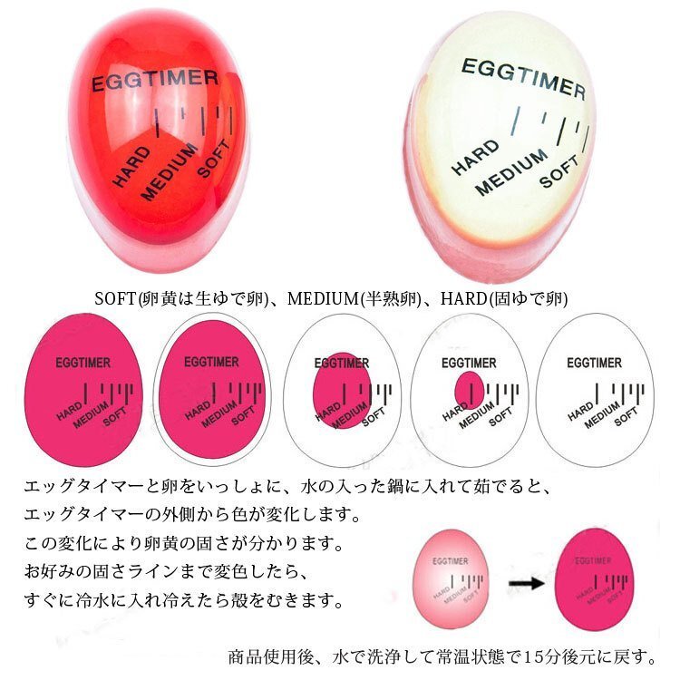 ◆エッグタイマー ゆで卵調理道具 色の変化で卵のゆで具合がひと目でわかる 半熟玉子に ゆでたまご用温度計 ソフト ミディアム ハード キッチンツール 時短 便利 EGGTM013