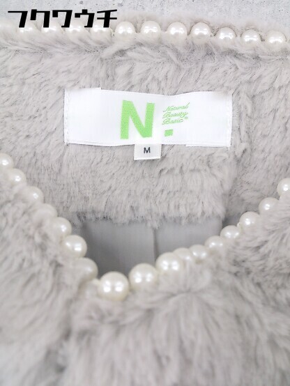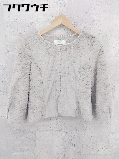 ◇ N. Natural Beauty Basic パール フェイクファー 八分袖 ノーカラー ジャケット サイズM グレー レディース