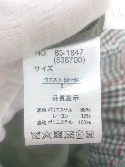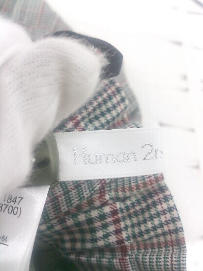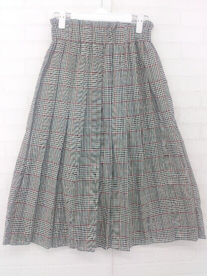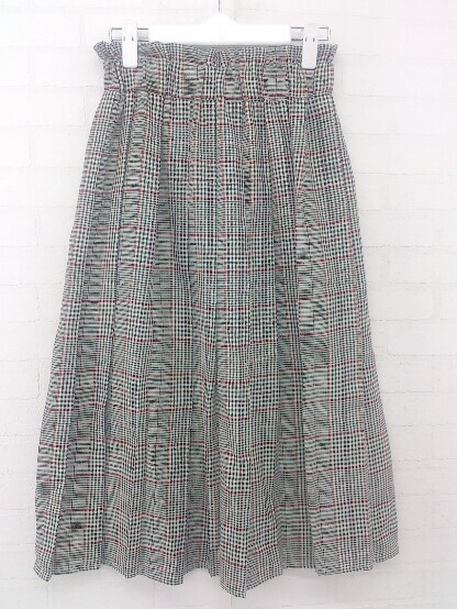 ◇ Human 2nd Occasion チェック 膝下丈 プリーツ スカート サイズS ホワイト グリーン ブラウン系 レディース E