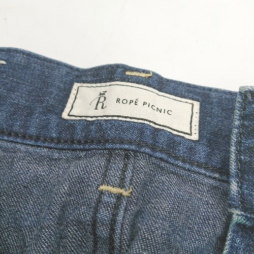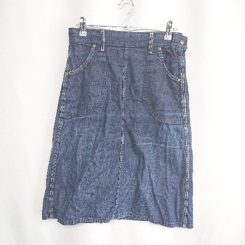 ◇ Θ ROPE PICNIC ロペピクニック Leeコラボ ハラコタグ 膝丈 台形 スカート サイズM ネイビー レディース E