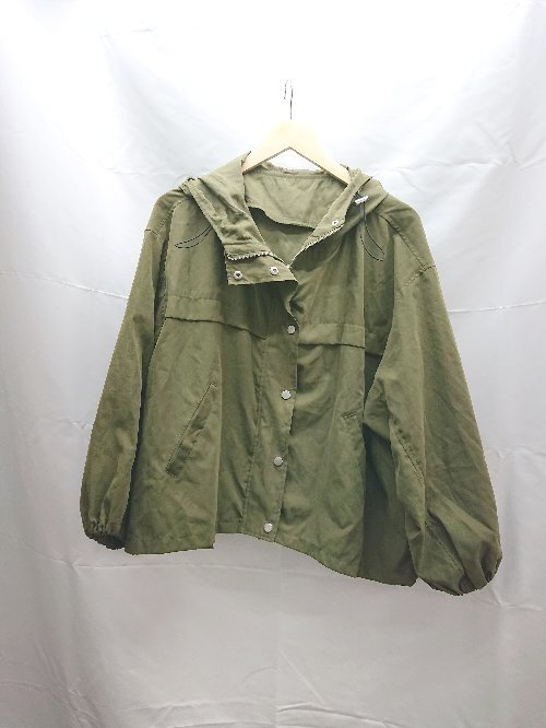 ◇ Ranan フード ジップアップ 切り返し 長袖 ジャケット サイズM グリーン系 レディース E