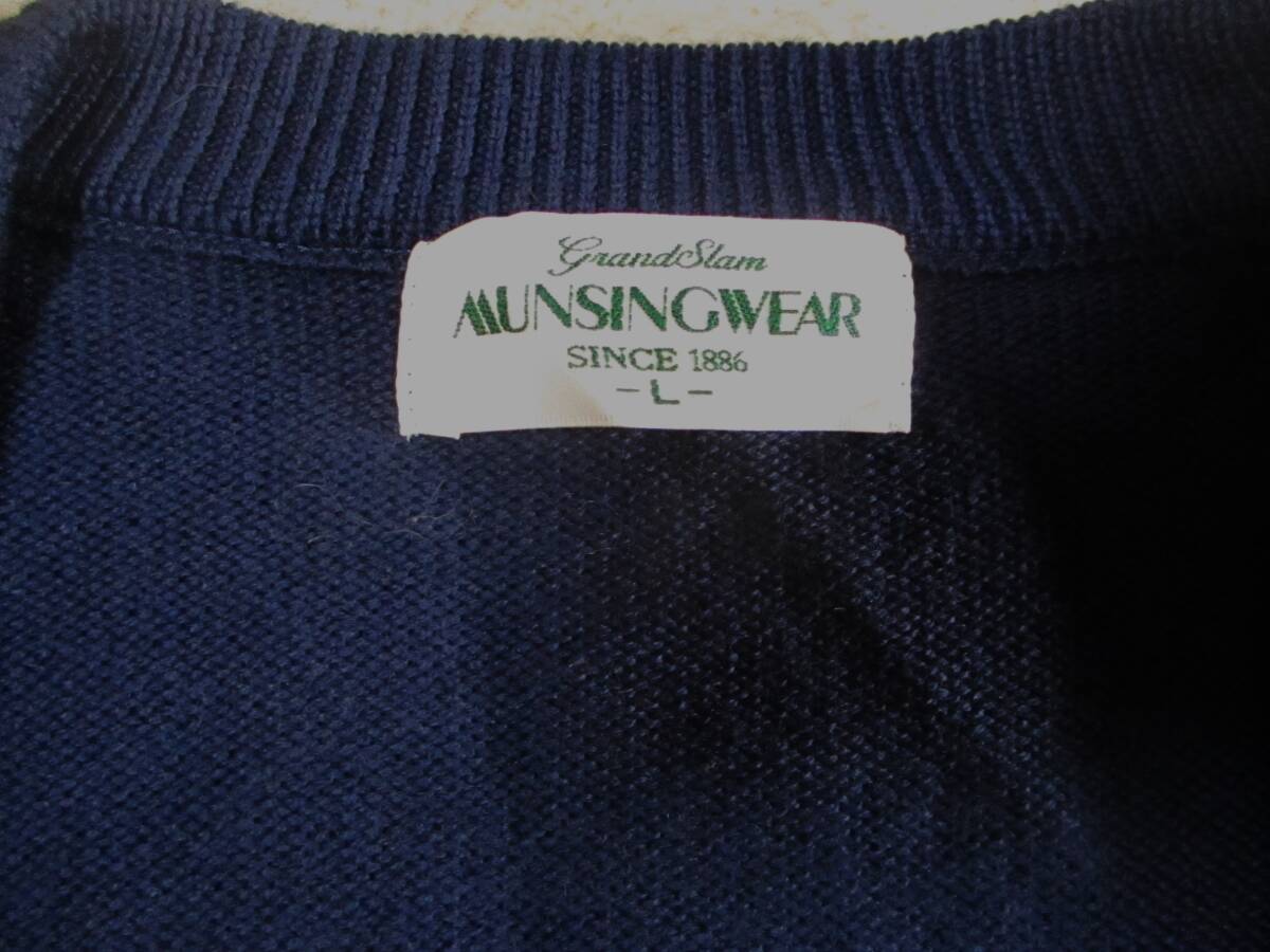 USED・マンシング グランドスラム・ニットベスト・サイズL・着丈62㎝・身幅脇下54㎝・毛80%・アクリル7%・ナイロン3%です。汚れなどは有りませんが、USED品にご理解頂ける方の入札お願い致します。ゆうパケット230円で発送させて頂きます。