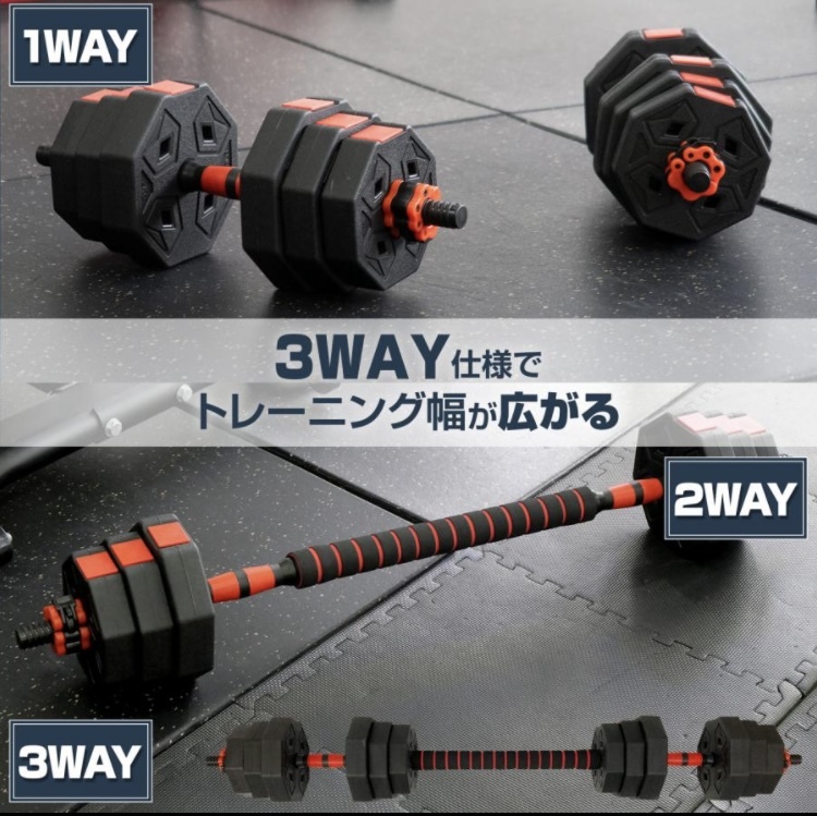 ダンベルにもバーベルにもなるシャフト付き3way可変式ダンベル