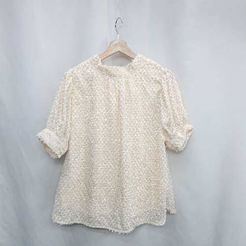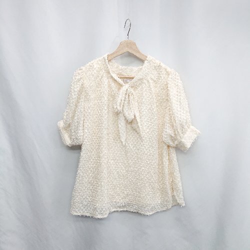 ◇ ⊂ N+ シャギー 半袖 リボンブラウス サイズL アイボリー系 レディース E