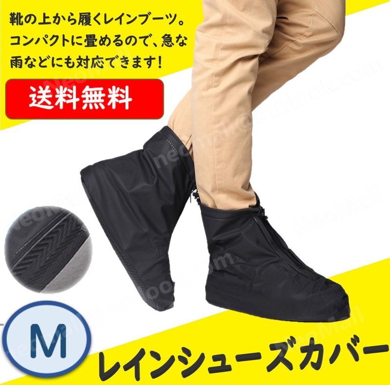 レインシューズカバー 雨 から靴を 守る! 防水 24.0~24.5cm対応 Mサイズ ブラック自転車バイク 通勤 通学 登山