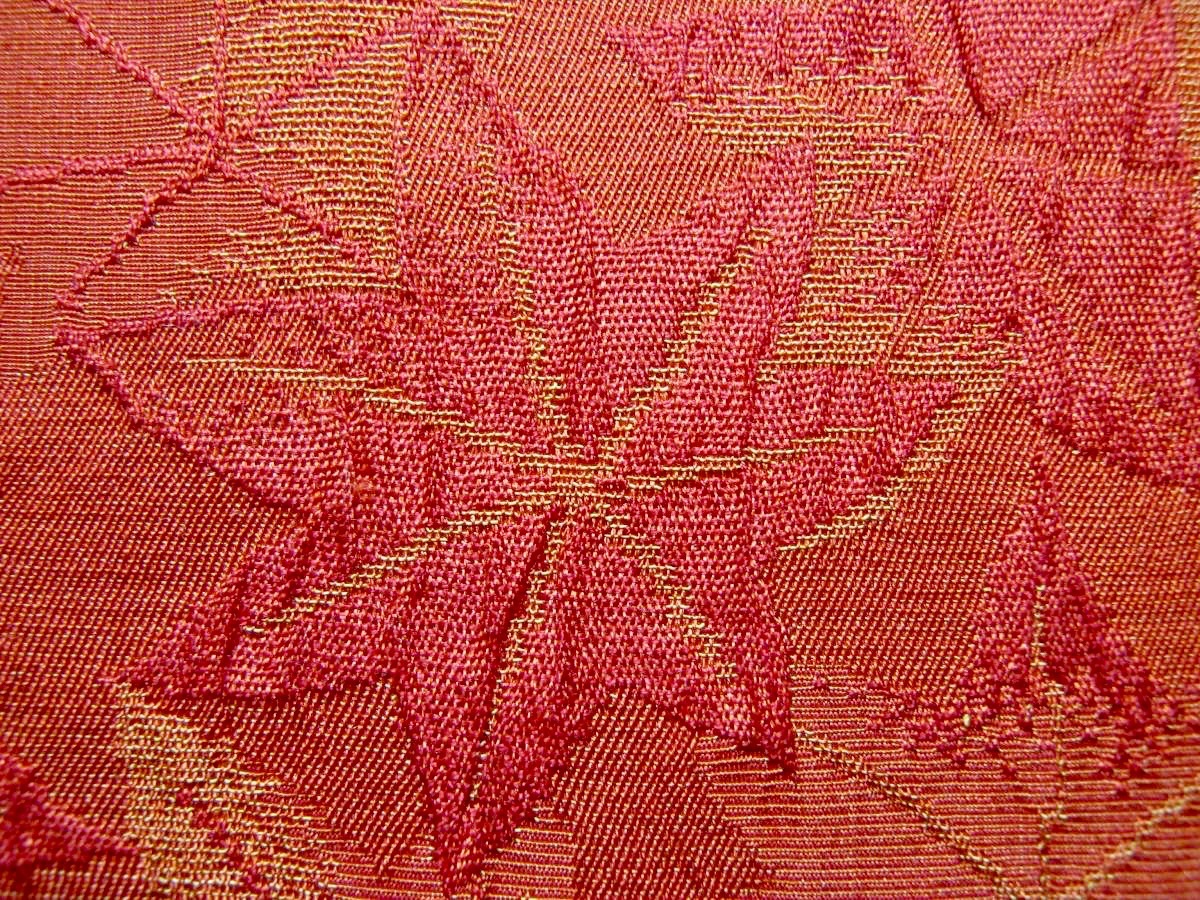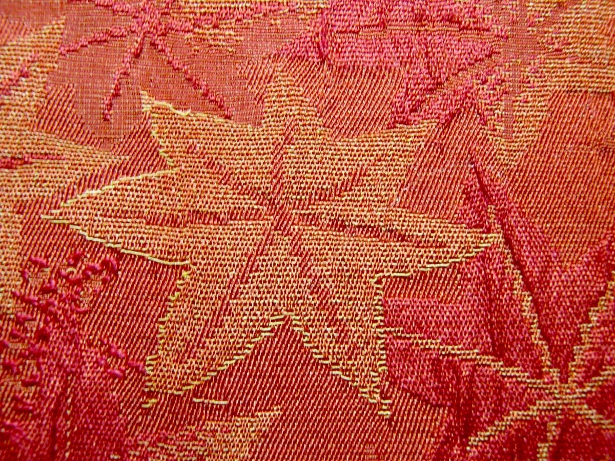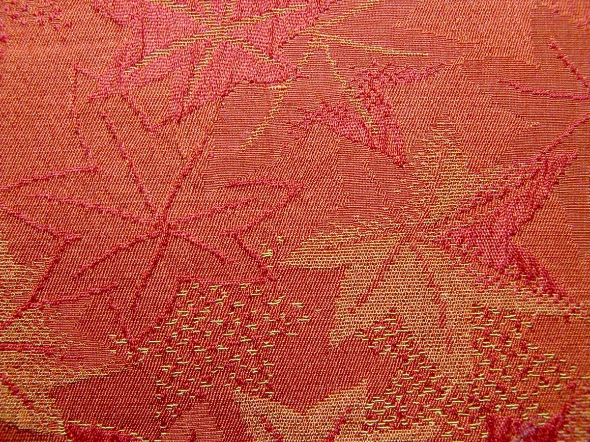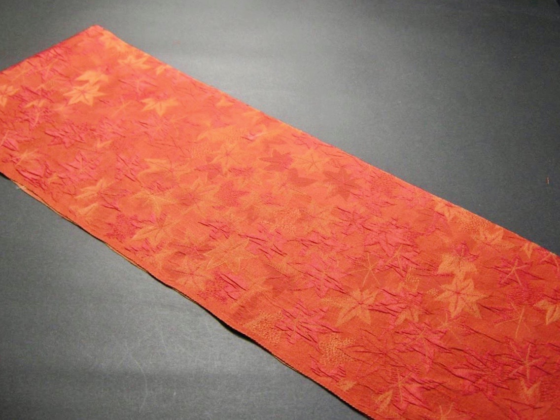 古布 半衿【正絹膨れ・刺繍織/楓・もみじ尽くし 渋赤橙濃淡/紅葉枯葉落葉秋もよう】はぎれ お細工吊し飾り市松人形木目込み人形一閑張