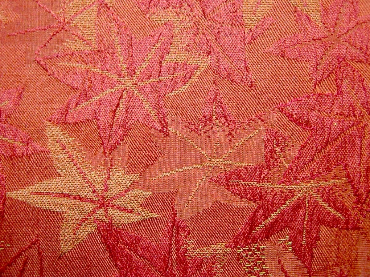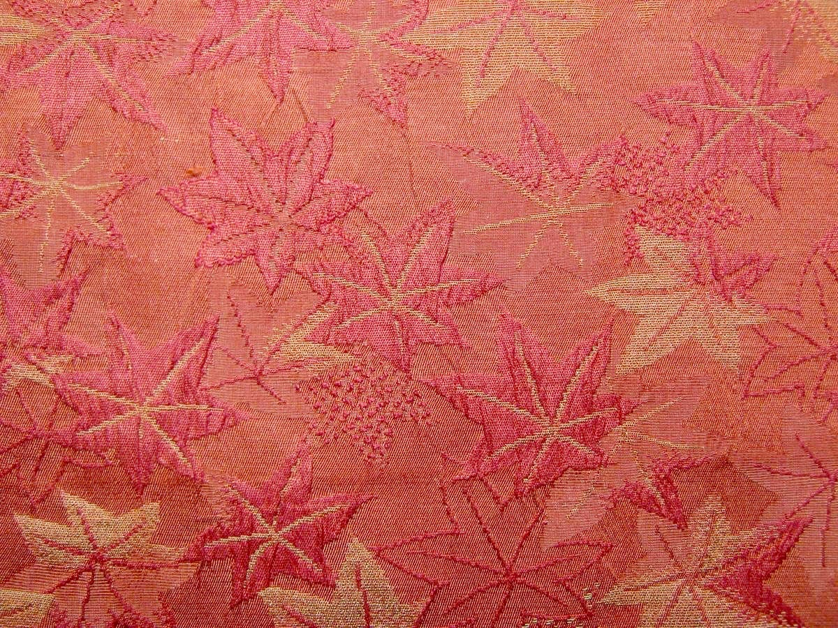 古布 半衿【正絹膨れ・刺繍織/楓・もみじ尽くし 渋赤橙濃淡/紅葉枯葉落葉秋もよう】はぎれ
