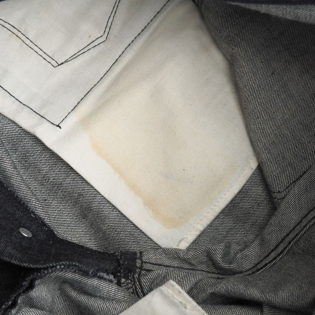 【コンディション詳細】 写真のように右サイドポケット裏地にシミ、所々にアタリ、サイドポケット口に薄汚れ、左腿、膝辺り、左すね、左膝後、ふくらはぎなどに汚れ、シミがございますものの、ほか支障になるようなダメージなどはございません。 |