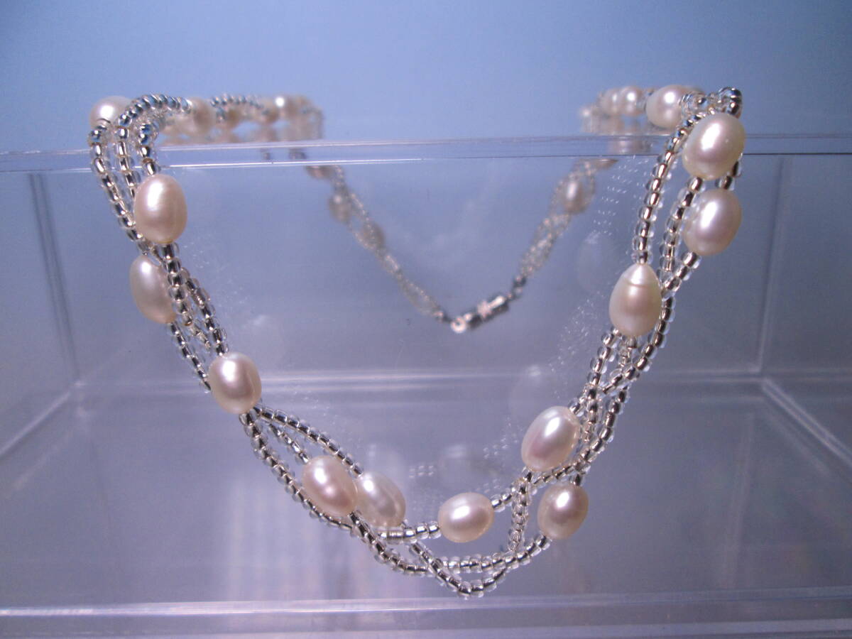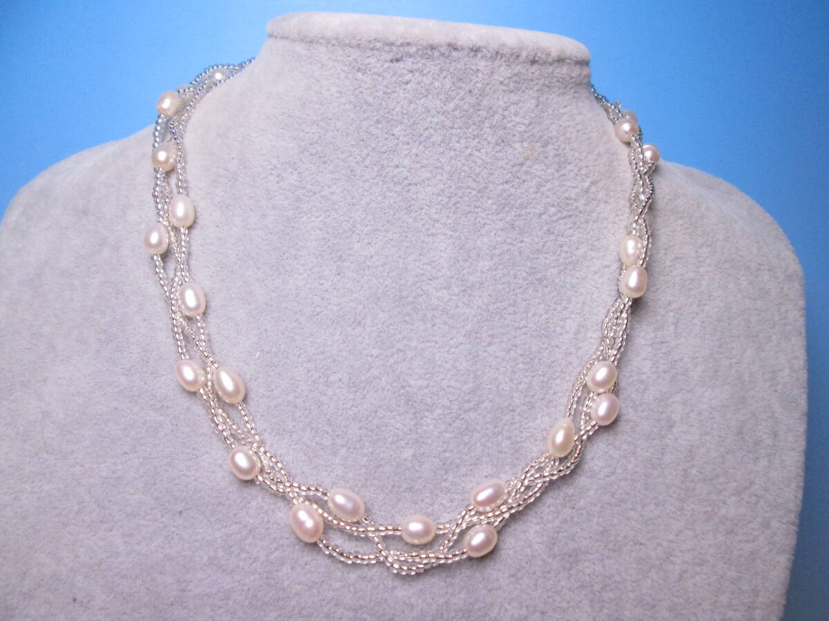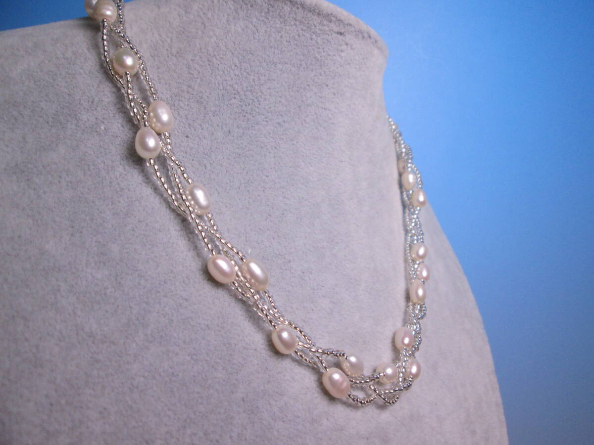☆本真珠 淡水パール/ビーズの3連デザインネックレス 18,2g パーティー/コスチュームジュエリー