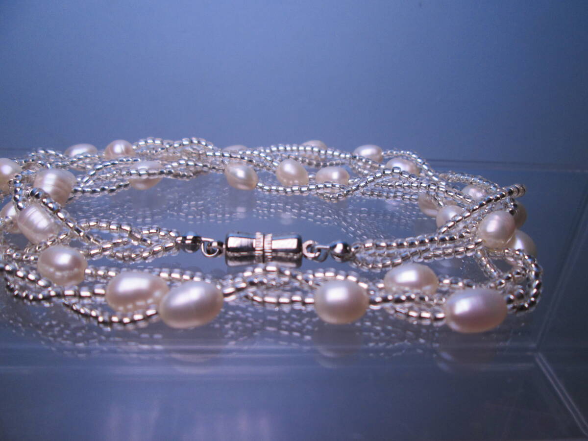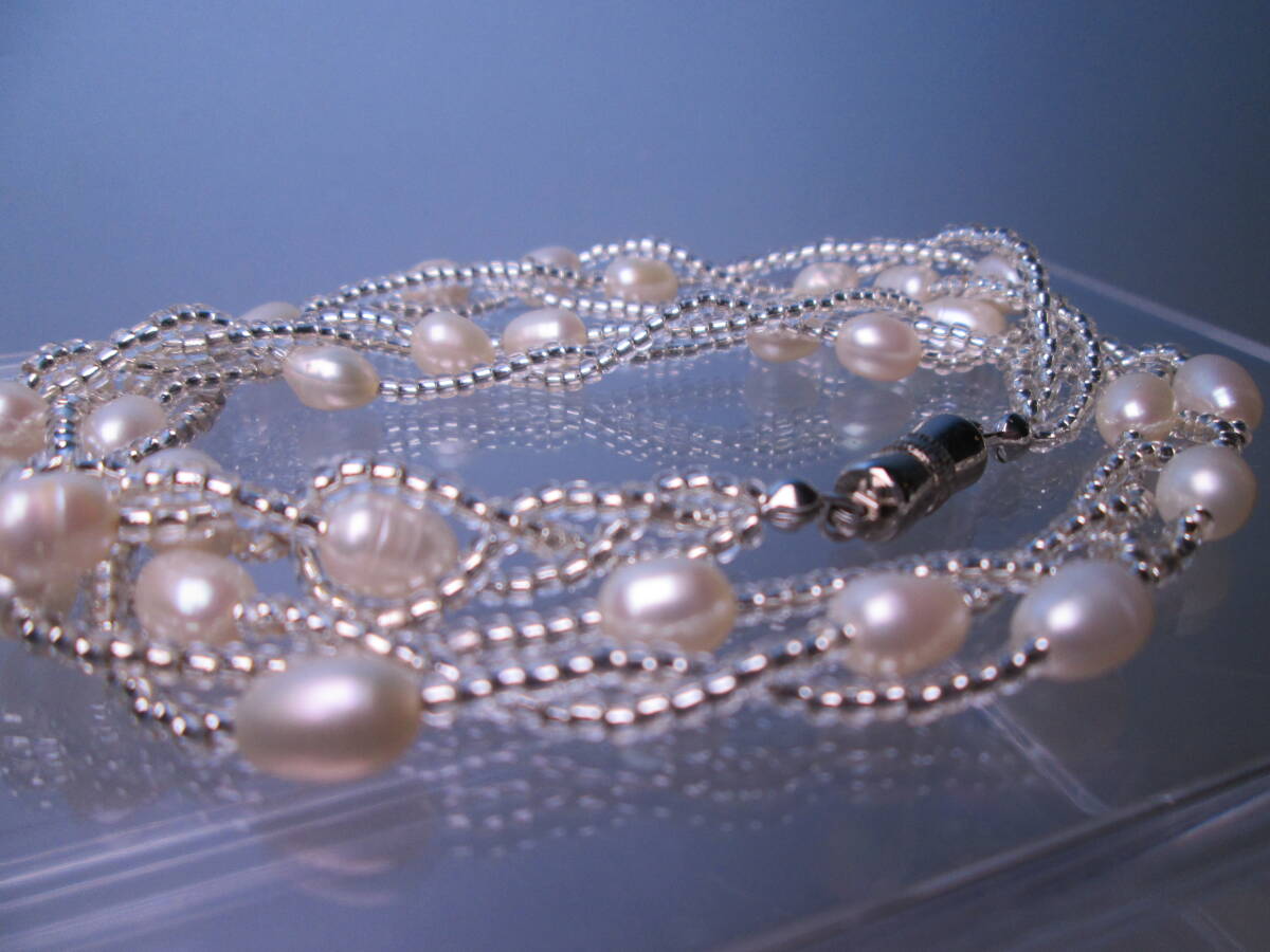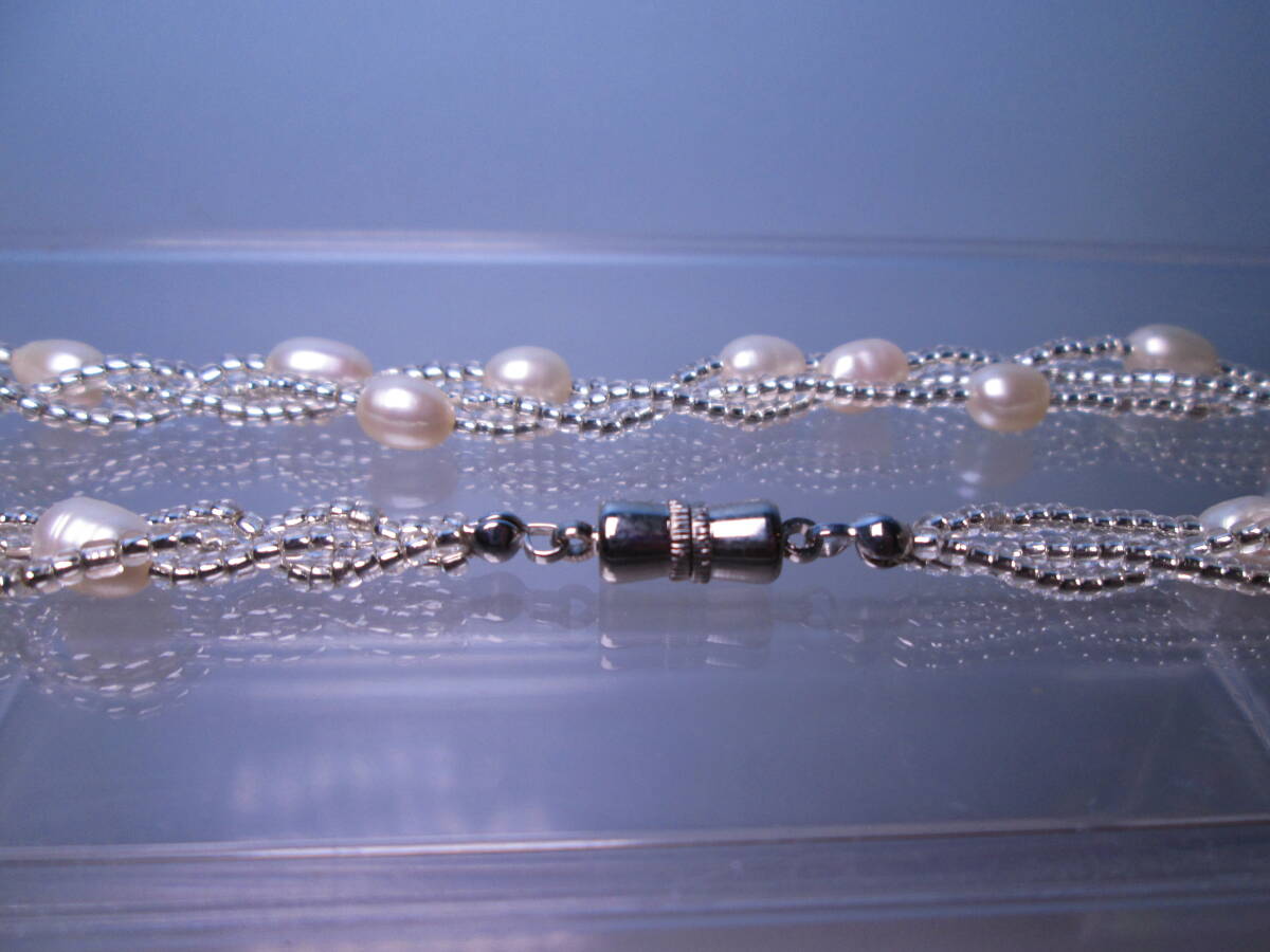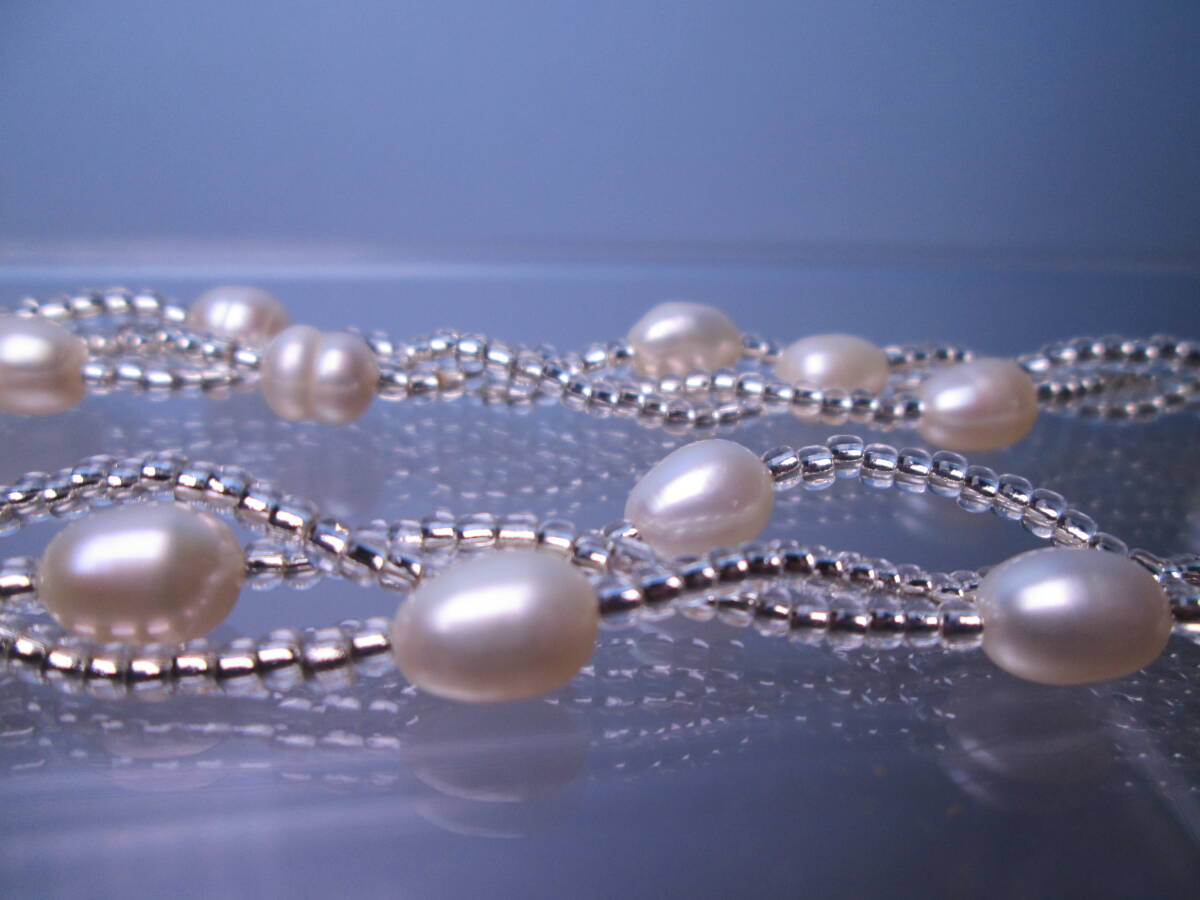 ☆本真珠 淡水パール/ビーズの3連デザインネックレス 18,2g パーティー/コスチュームジュエリー