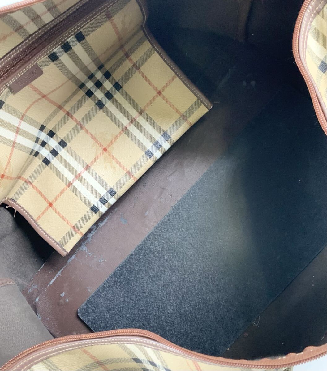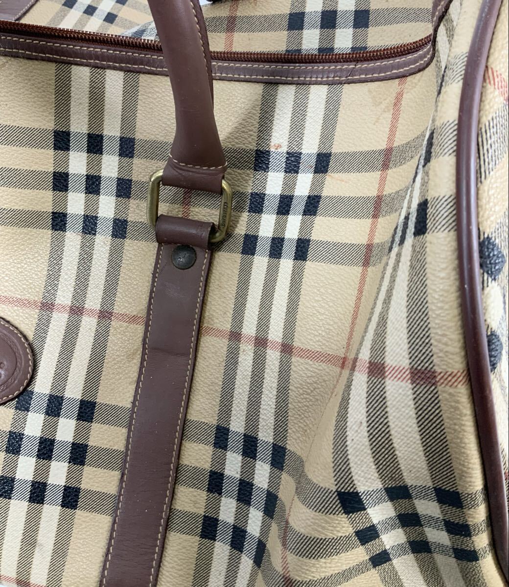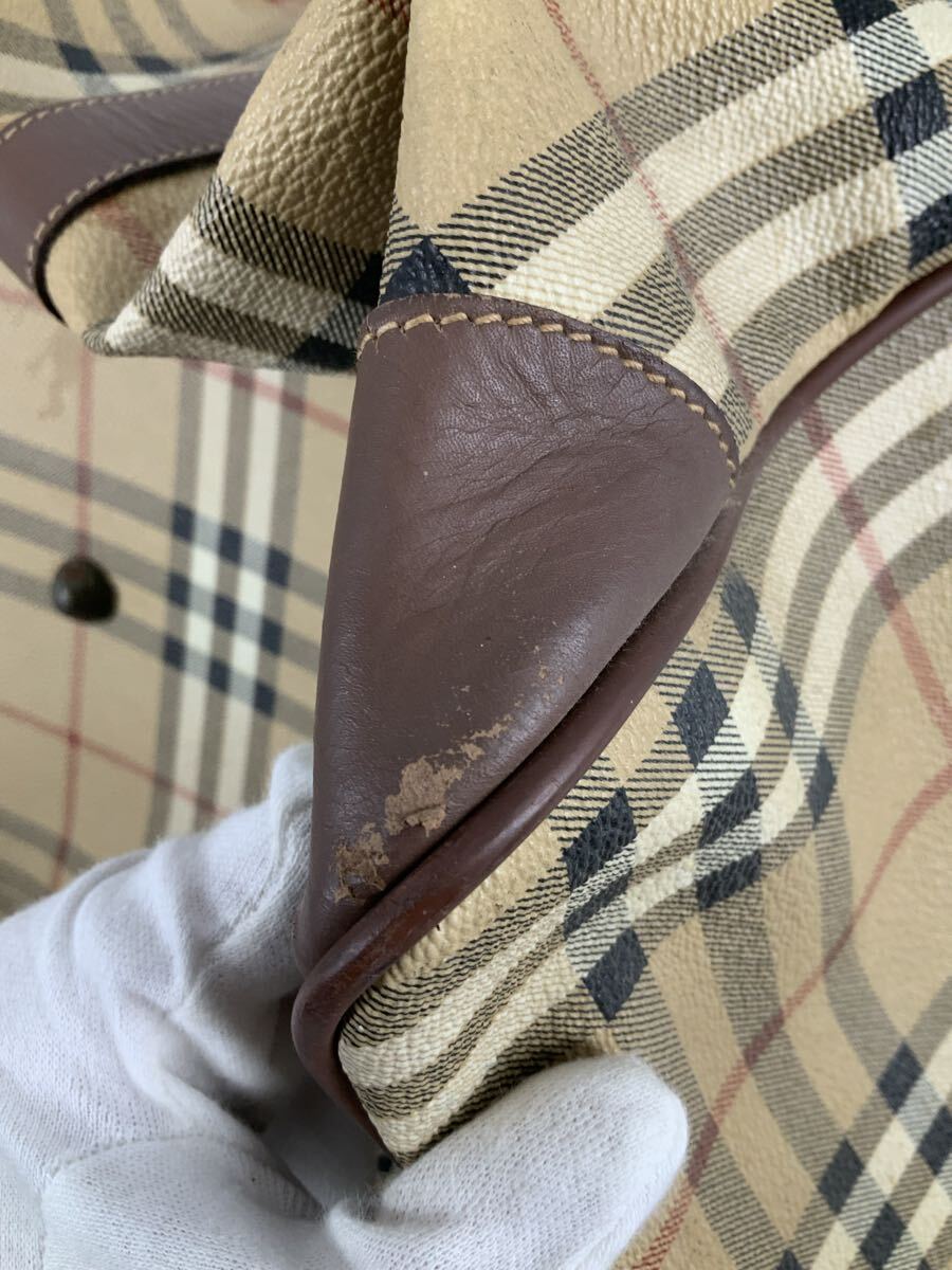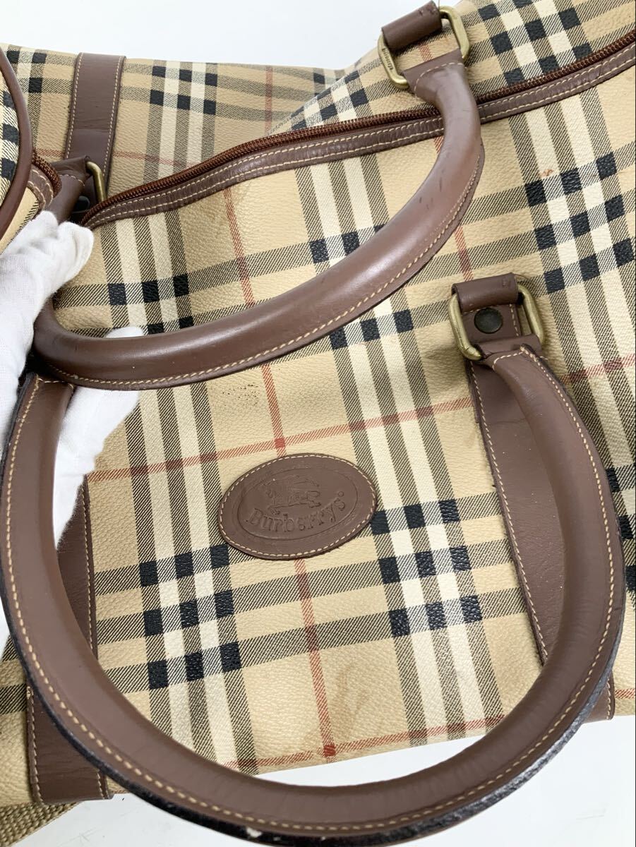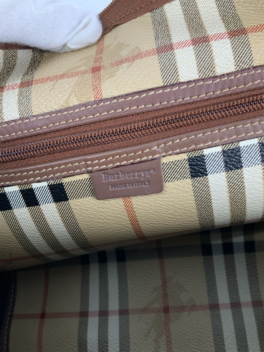 | 商品説明 | ブランド・メーカー:バーバリー 素材:PVC(ビニール) 採寸:マチ【平置きの状態での直線距離】23cm 高さ【平置きの状態での直線距離】24cm 幅【平置きの状態での直線距離】51cm 持ち手 42cm 素人採寸の為、誤差はご容赦くださいませ。 状態:内側に劣化、表面に汚れ、四つ角に擦れが御座います。 ご理解の上、ご入札くださいませ。 |
