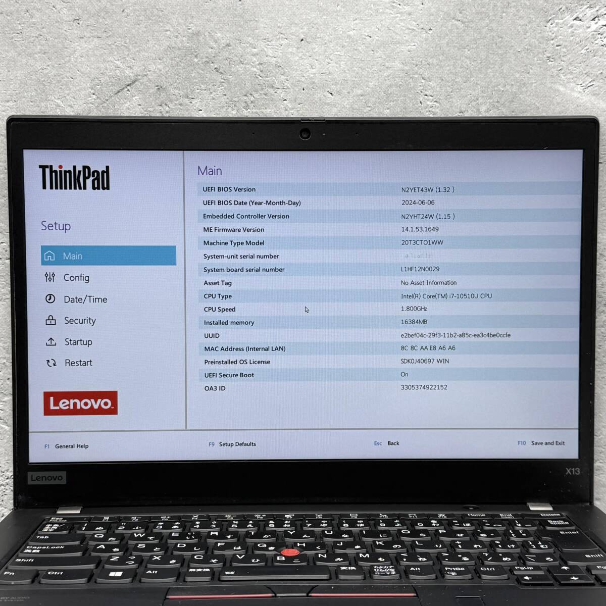 | Su-25834. LENOVO / ThinkPad X13 Gen1 / Core i7-10510U / 第10世代CPU / 16GBメモリ / HDD無し / 13インチ / 通電確認・ジャンク | |