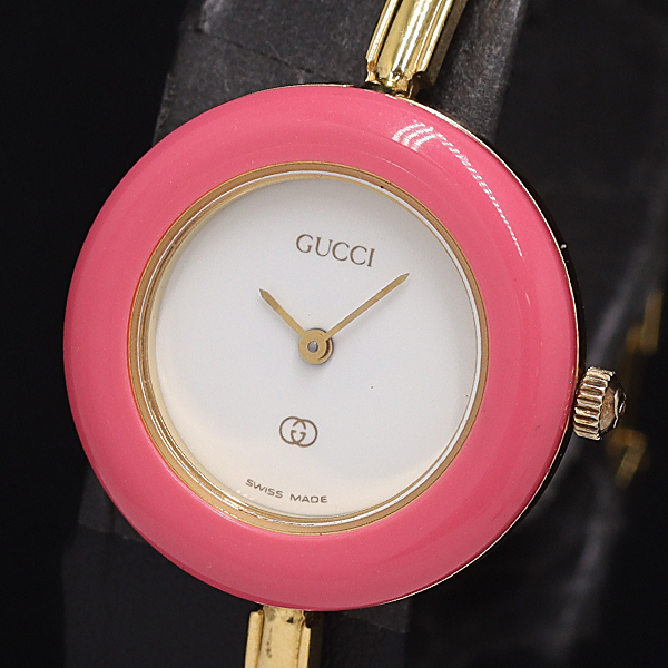 1円 稼働 グッチ チェンジベゼル 1100-L QZ ホワイト文字盤 レディース腕時計 0023100 11JWT MST